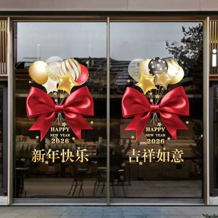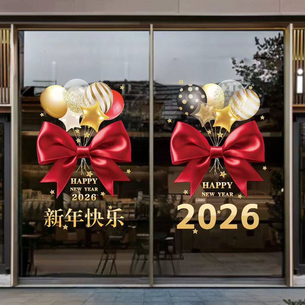 2026马年新年快乐装饰窗花春节元旦氛围布置静电贴画橱窗玻璃贴纸