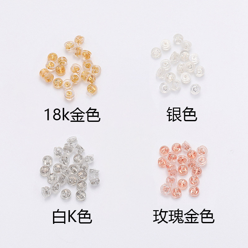 耳堵硅胶后塞耳钉塞子超紧镀18k金细针防滑防掉耳帽堵头珍珠带锁