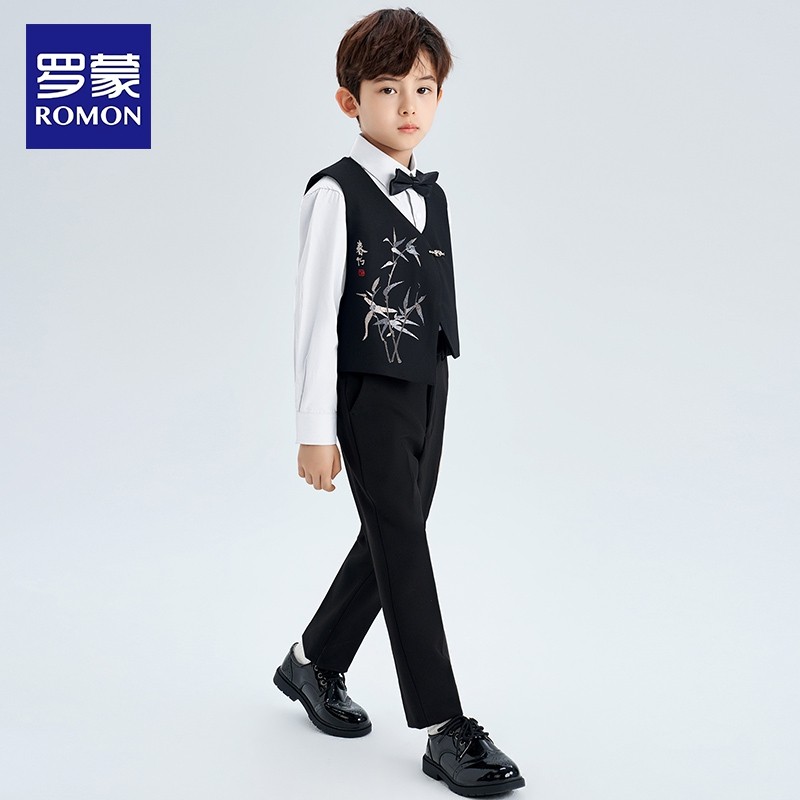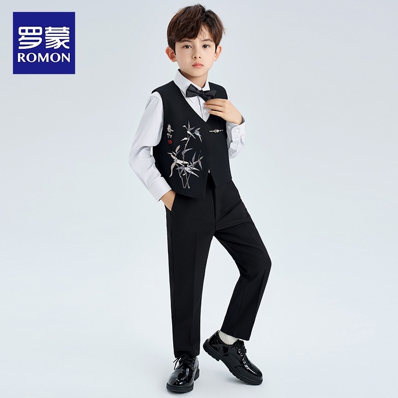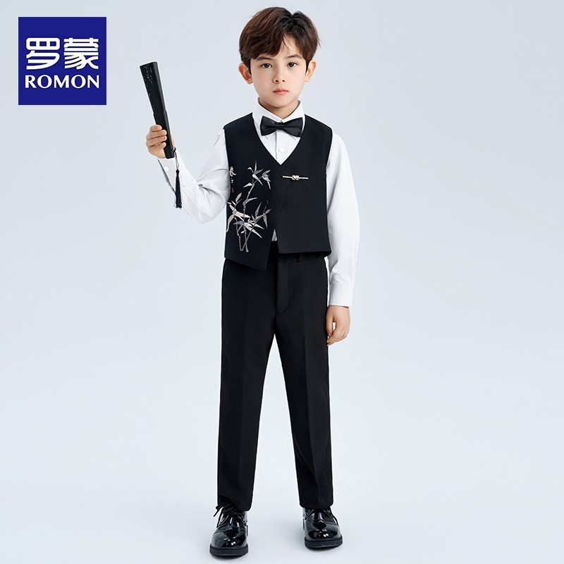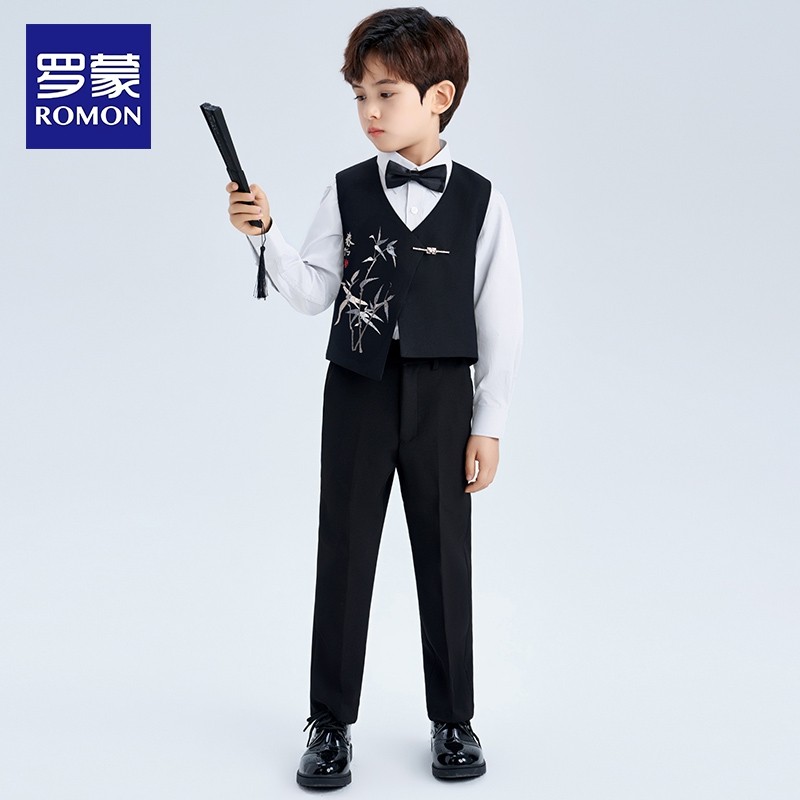 罗蒙儿童礼服套装男童西装国风新中式小主持人西服男孩夏季演出服