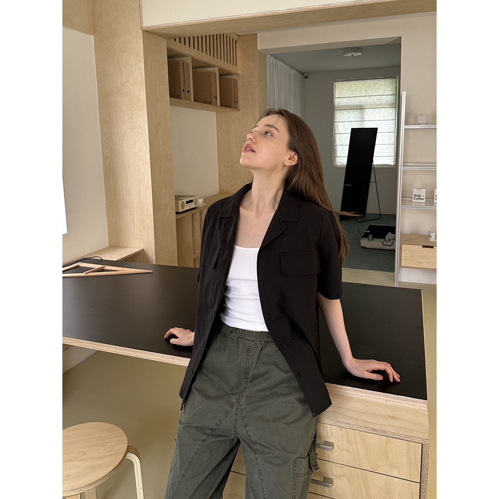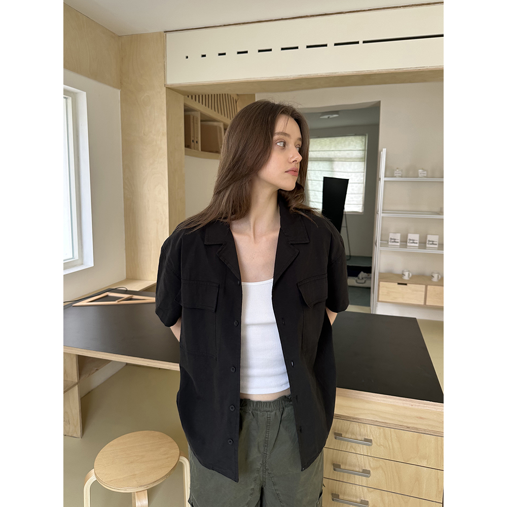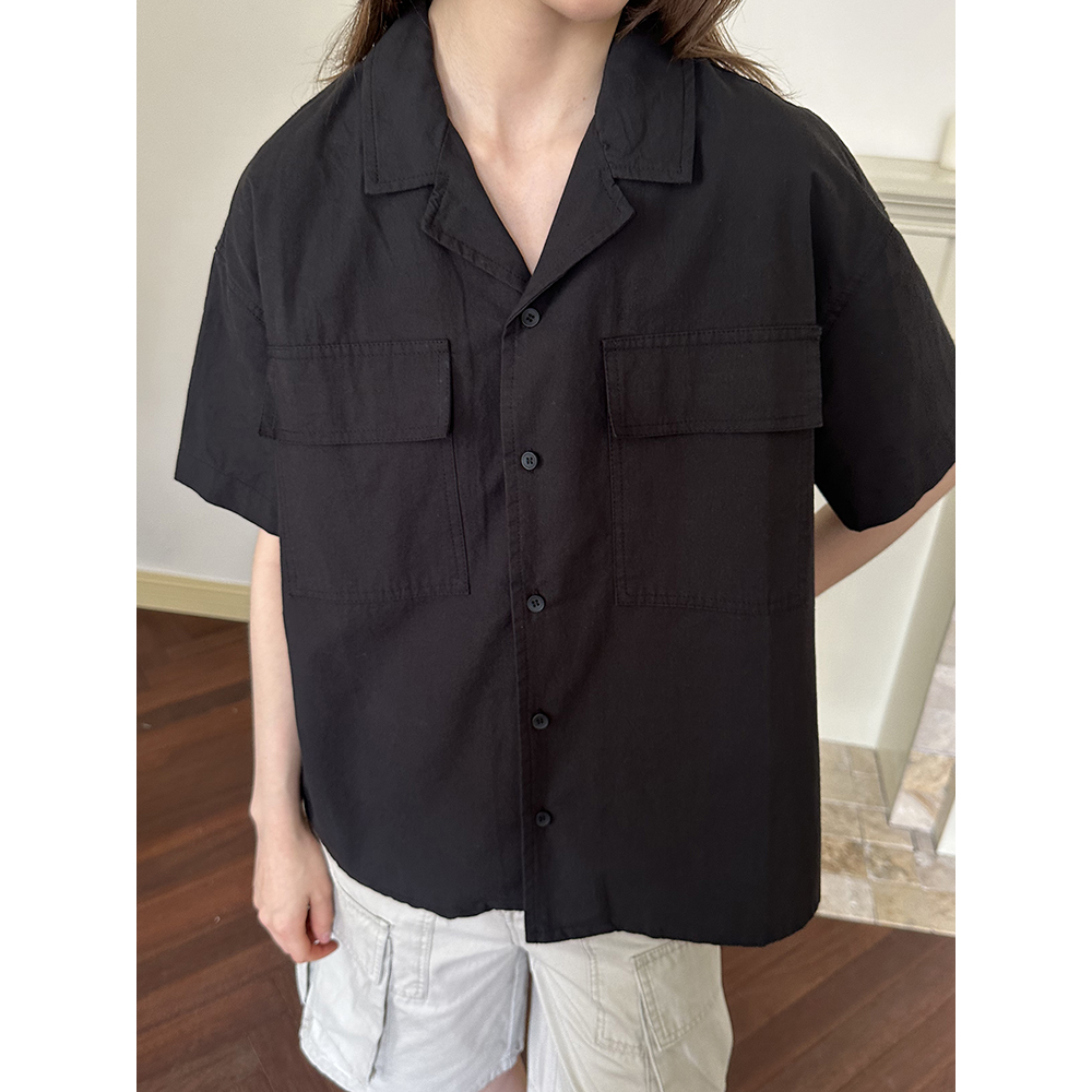 【现货】UNRETRO 棉麻混纺美式古巴领短袖衬衫男女工装衬衣