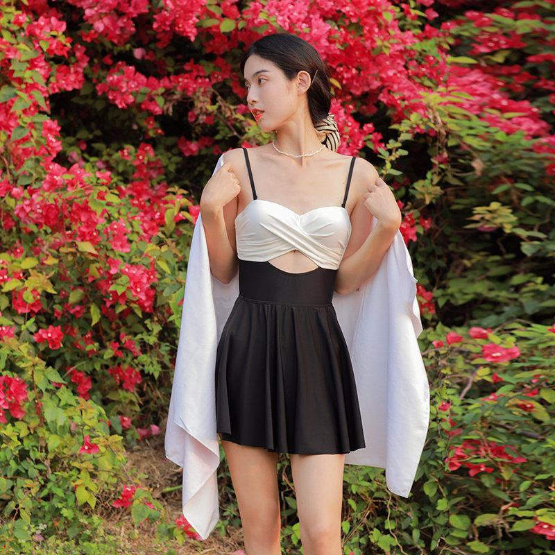诗凯迪旗舰店新款韩国ins网红连体裙显瘦遮肚温泉度假游泳衣女夏
