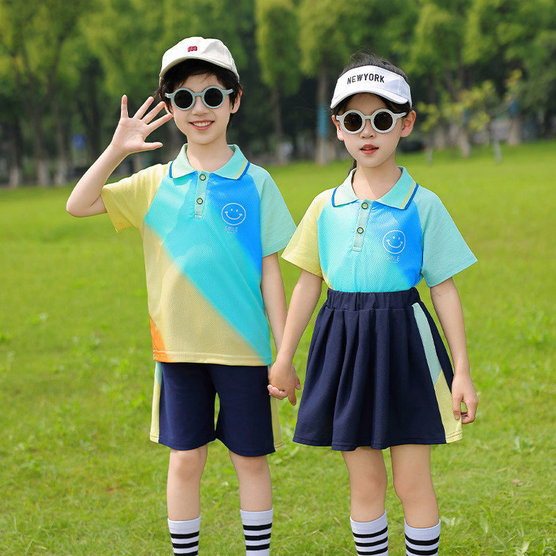 校服套装小学生夏装幼儿园园服夏季儿童彩虹班服短袖学院演出服装