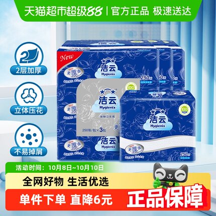 【下拉详情享优惠】洁云平板卫生纸加韧压花2层125抽9包抽取厕纸