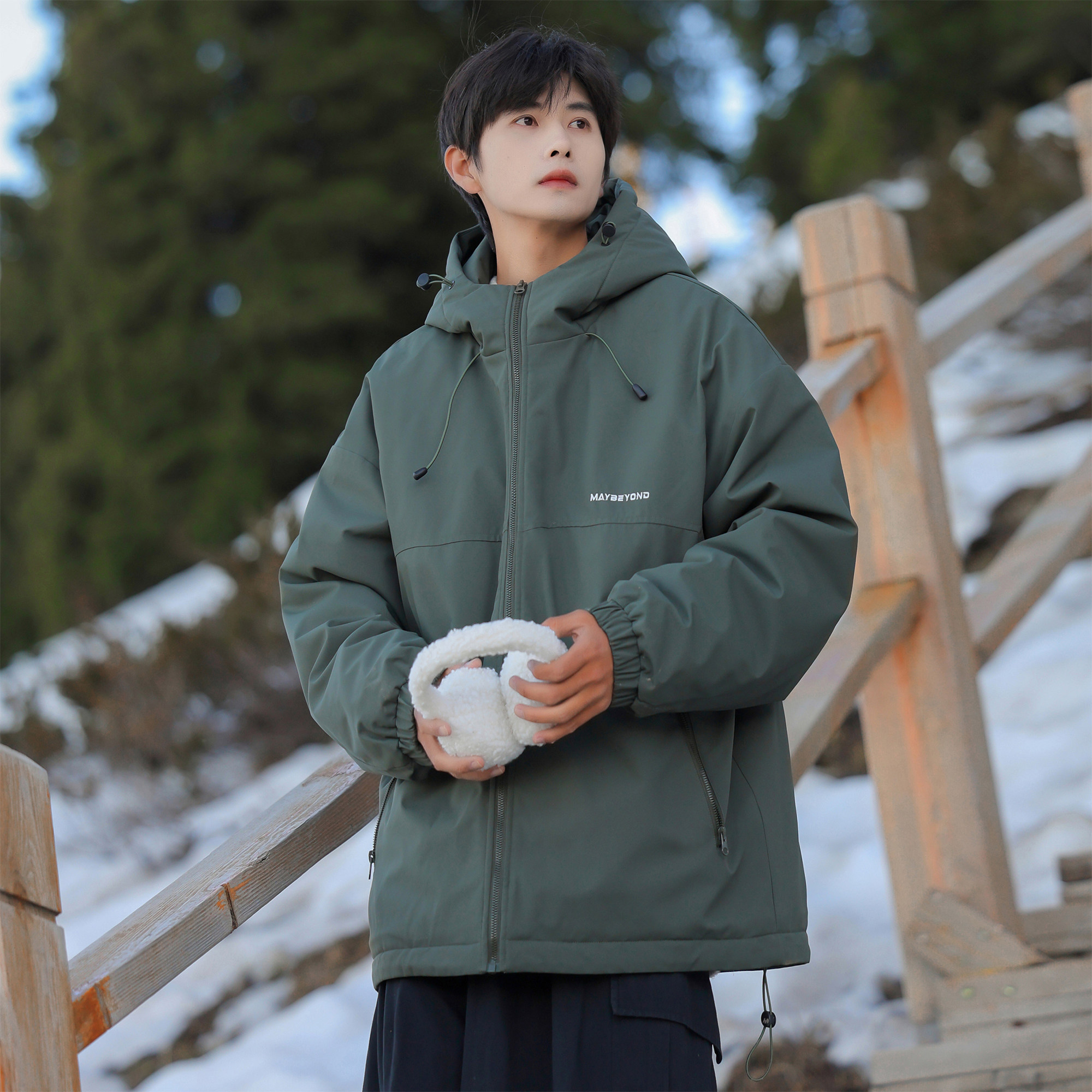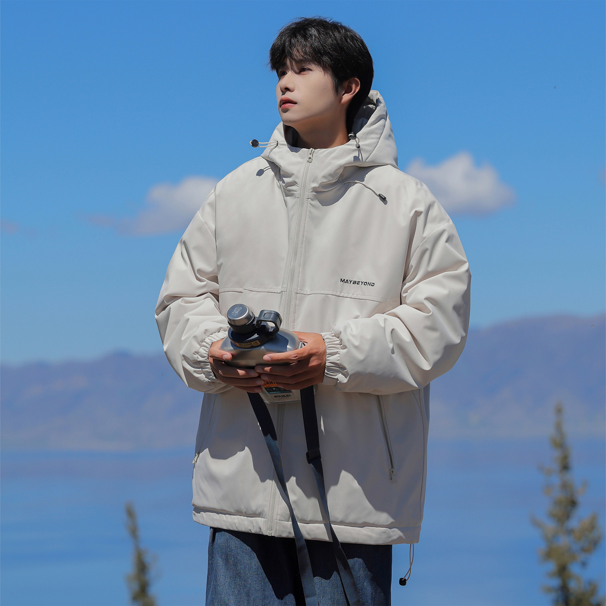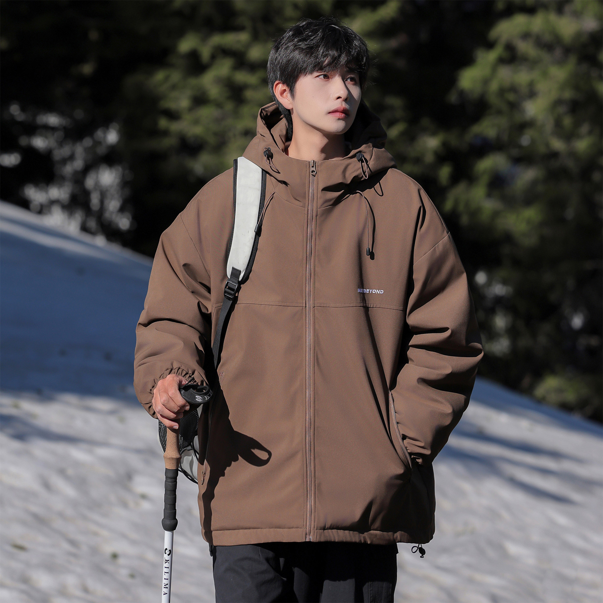 二更美式山系机能冲锋棉服男