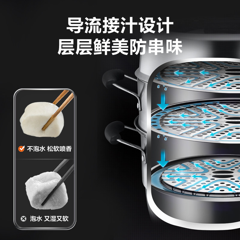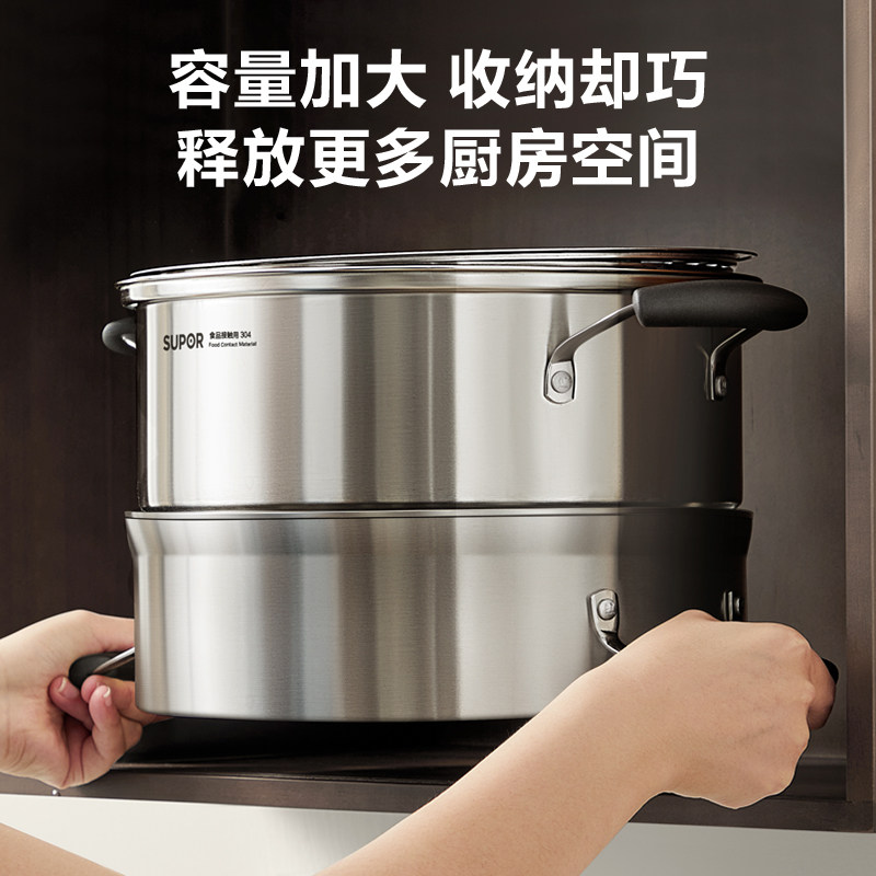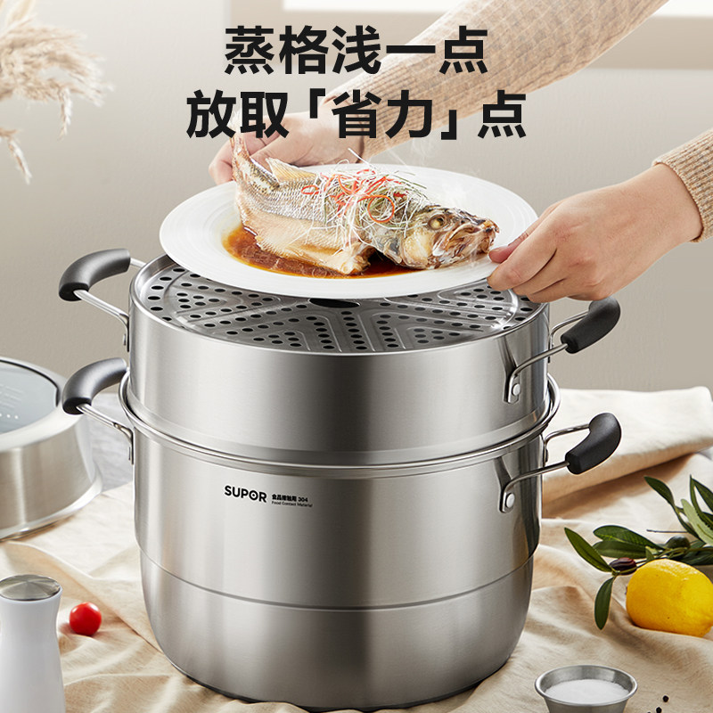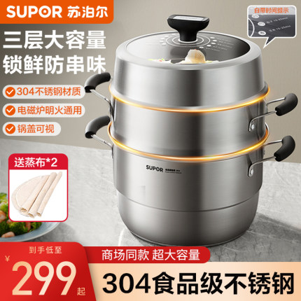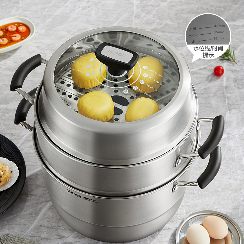 苏泊尔蒸锅家用304不锈钢三层加厚大号蒸格蒸笼电磁炉燃气灶通用