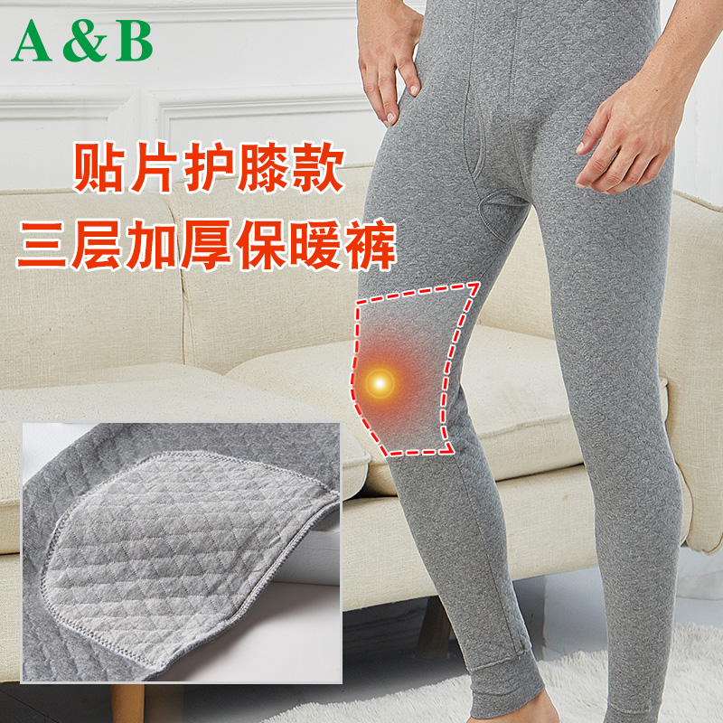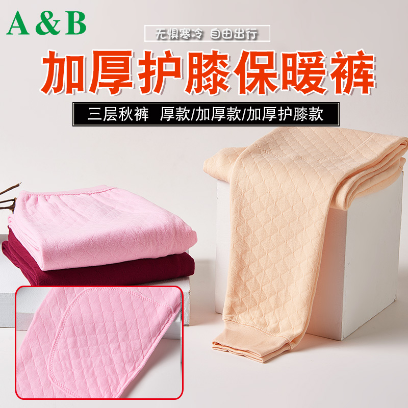 AB内衣加厚护膝男女纯棉夹棉棉毛裤三层保暖单件单条高腰秋裤长裤