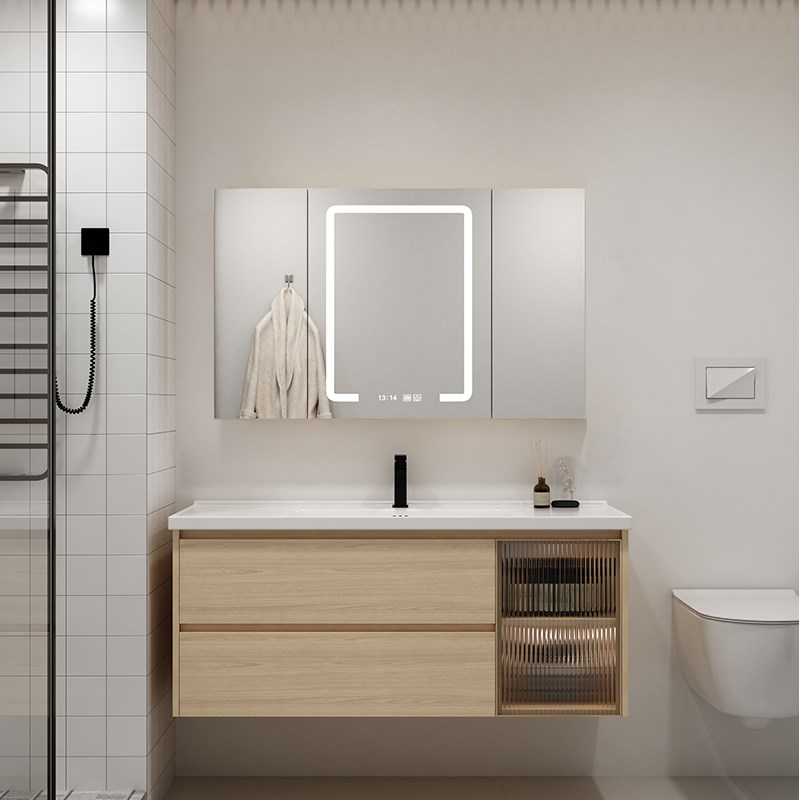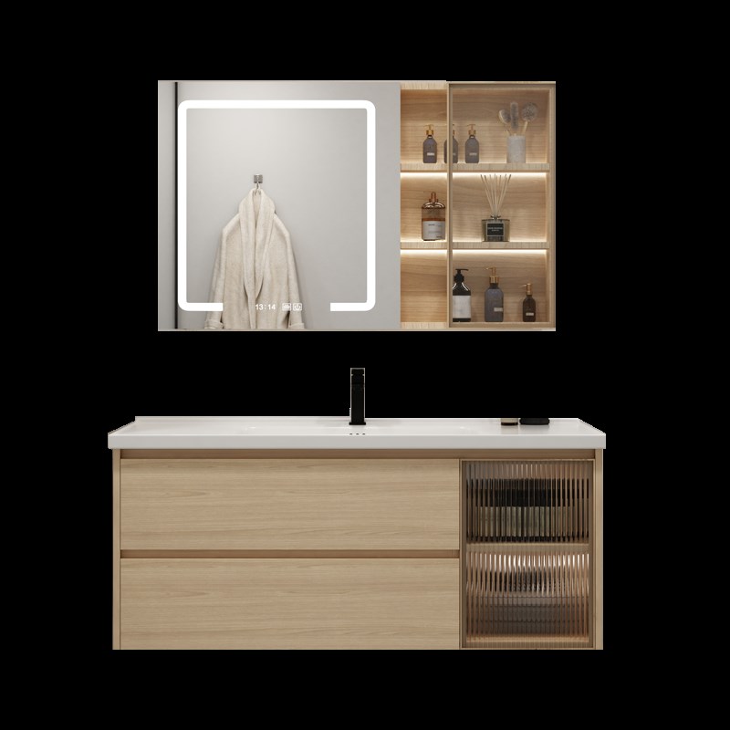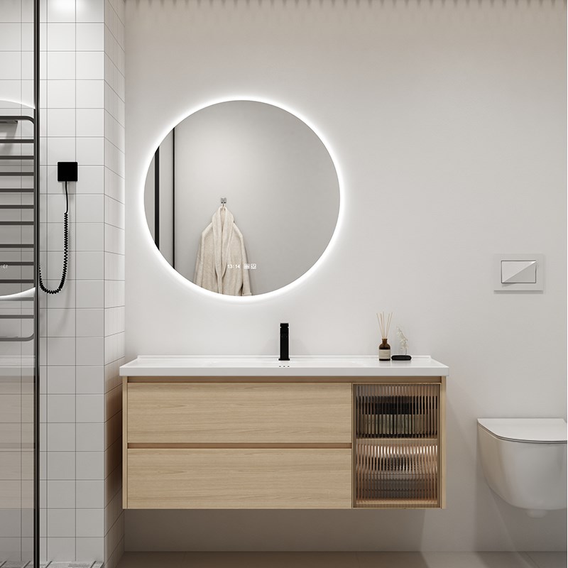 浴室柜组合现代简约洗手一体陶瓷盆池洗脸盆套装T原木色北欧洗漱