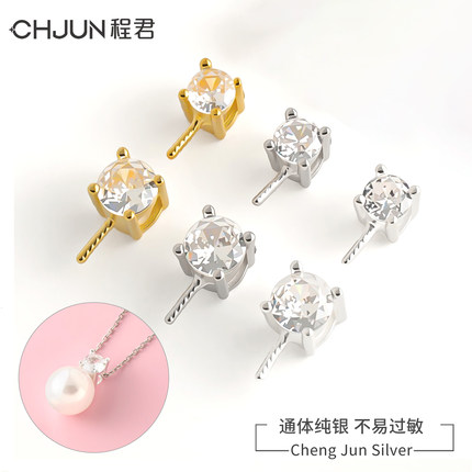 S925纯银镶嵌锆石吊坠空托DIY项链配件经典戴王妃半孔珍珠吊坠扣
