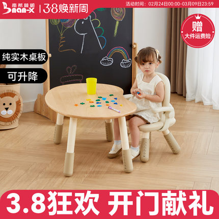 南希儿童沙发椅多功能调节幼儿学坐椅子扶手贝壳椅宝宝实木花生桌