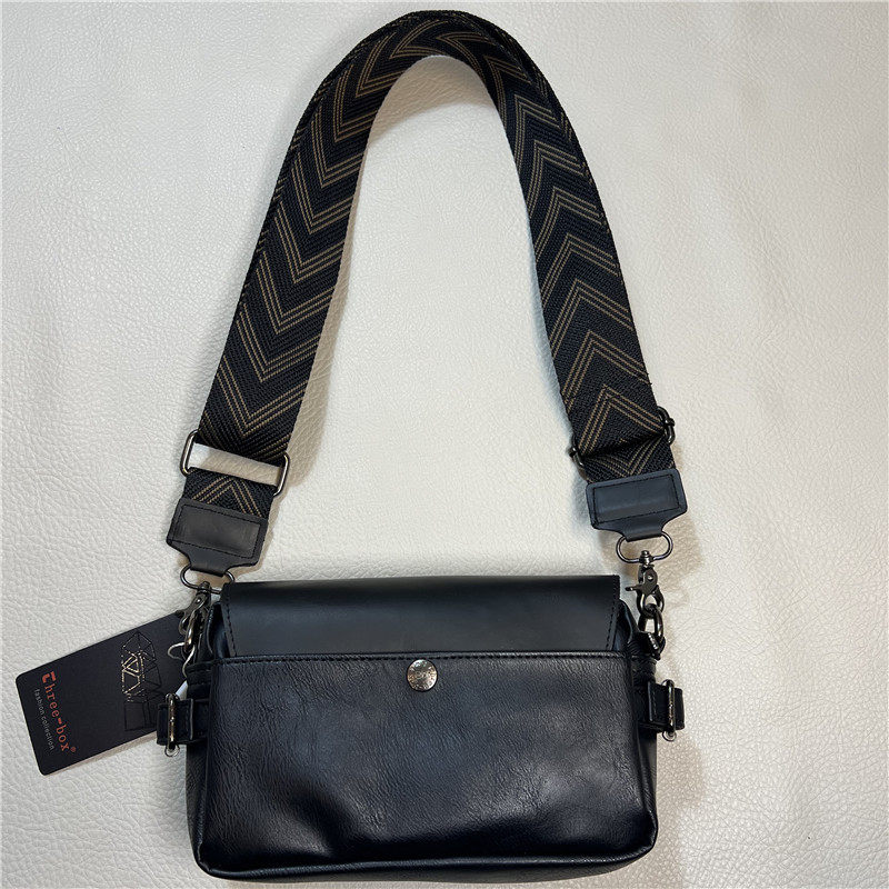 three-box新品男士单肩包 休闲条纹彩带斜挎包 日系翻盖男女背包
