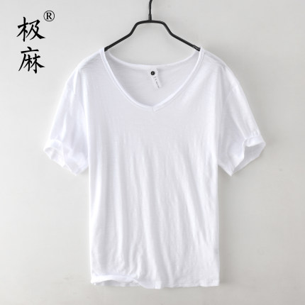 极麻V领基础休闲百搭竹节棉T恤男士日系宽松透气舒适青年纯棉汗衫