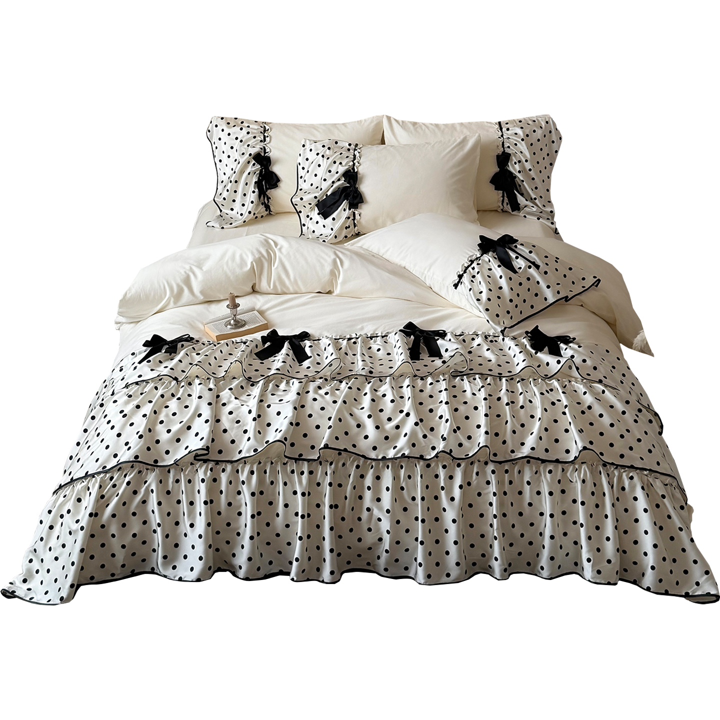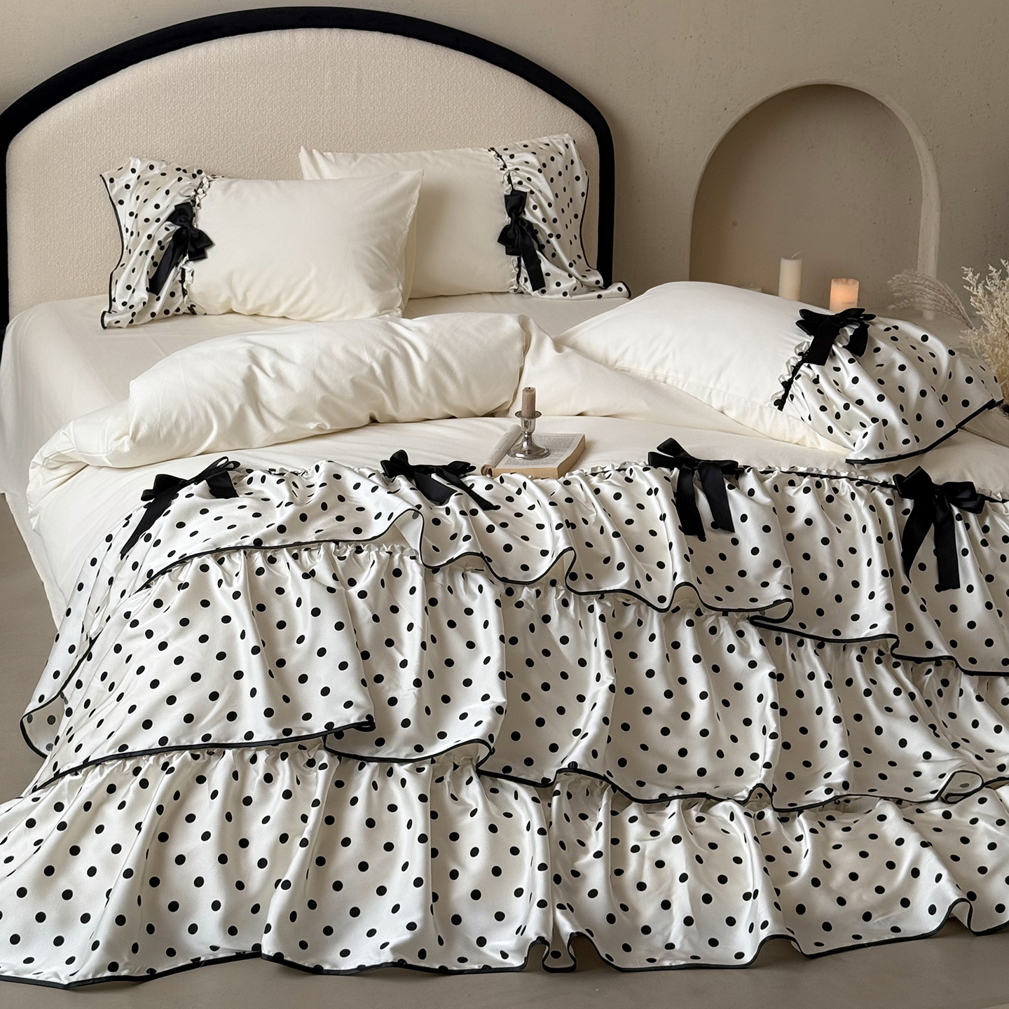 法式复古全棉磨毛四件套纯棉波点褶皱被套床单加厚立体蝴蝶结床品