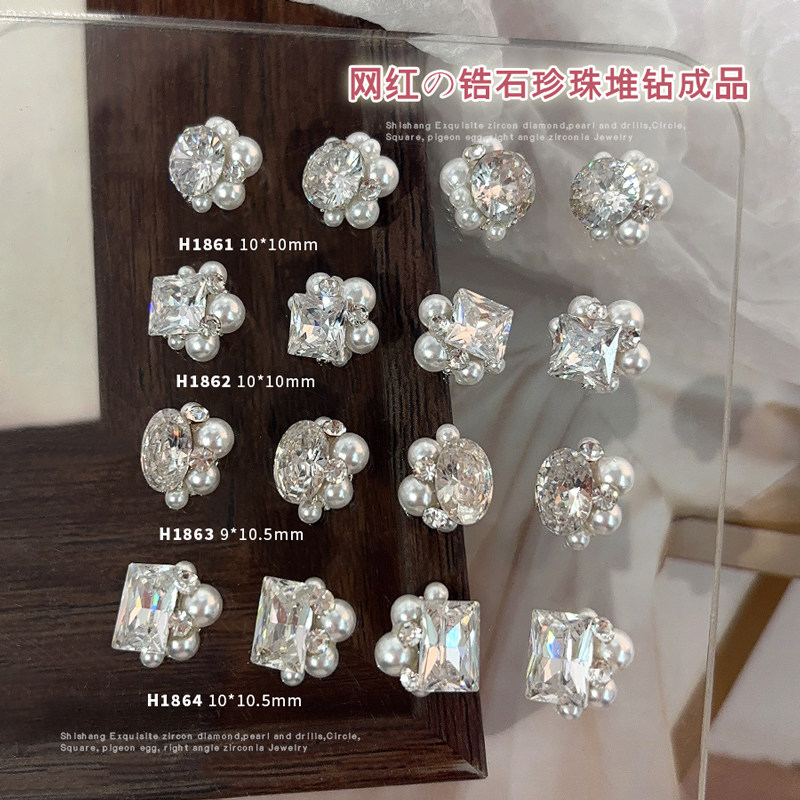 白色锆石堆钻美甲饰品2025新款成品钻球爆闪满钻直角鸽子蛋指甲钻