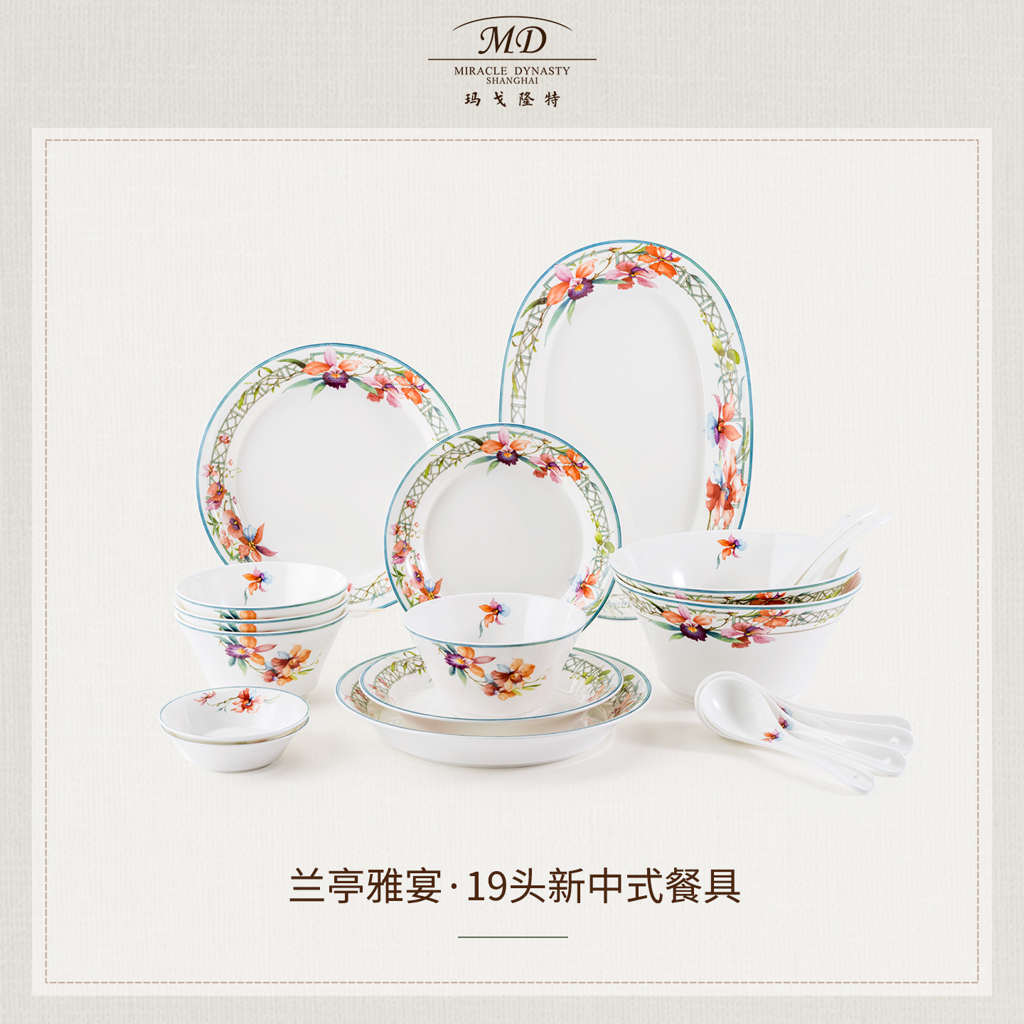 玛戈隆特兰亭雅宴高级家用骨瓷餐具套装碗盘碗碟乔迁礼物成套一套