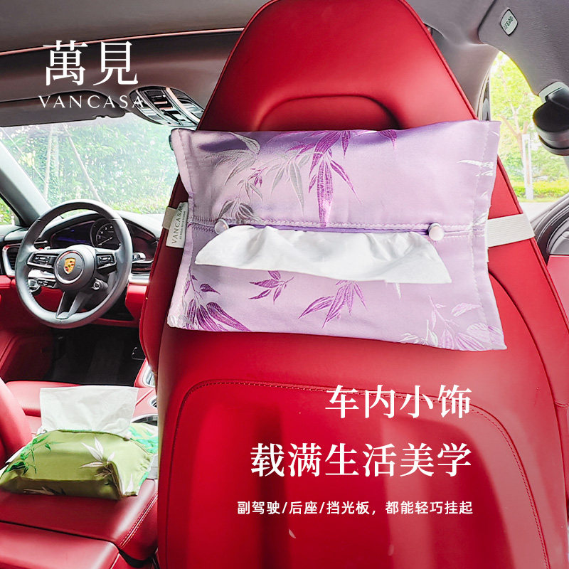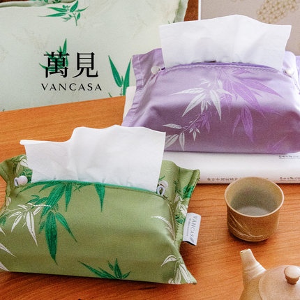 VANCASA修竹听岚 法式中国风纸巾盒紫绿竹影车载绑带抽纸巾盒家用