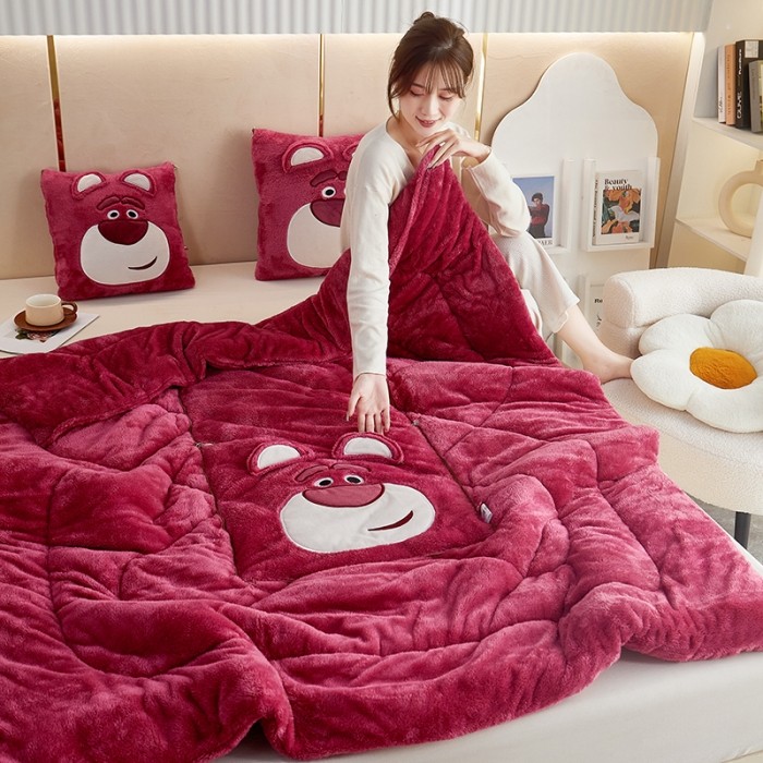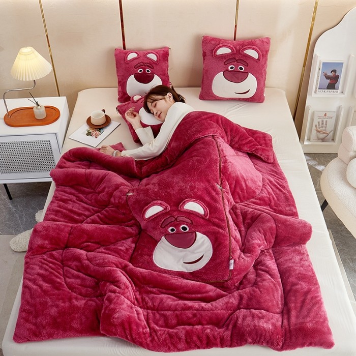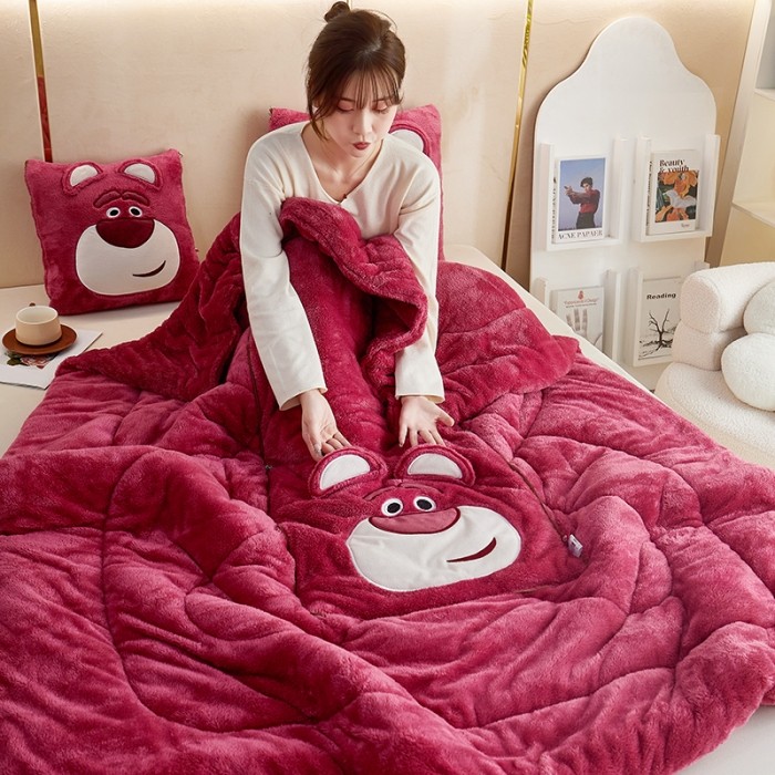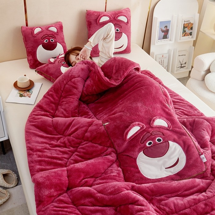 迪士尼草莓熊北极绒抱枕被两用办公室沙发午睡枕头二合一汽车靠枕