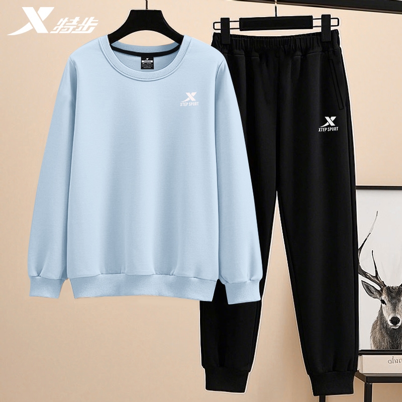 特步运动套装男秋季新款卫衣宽松休闲装跑步服男士长袖长裤两件套