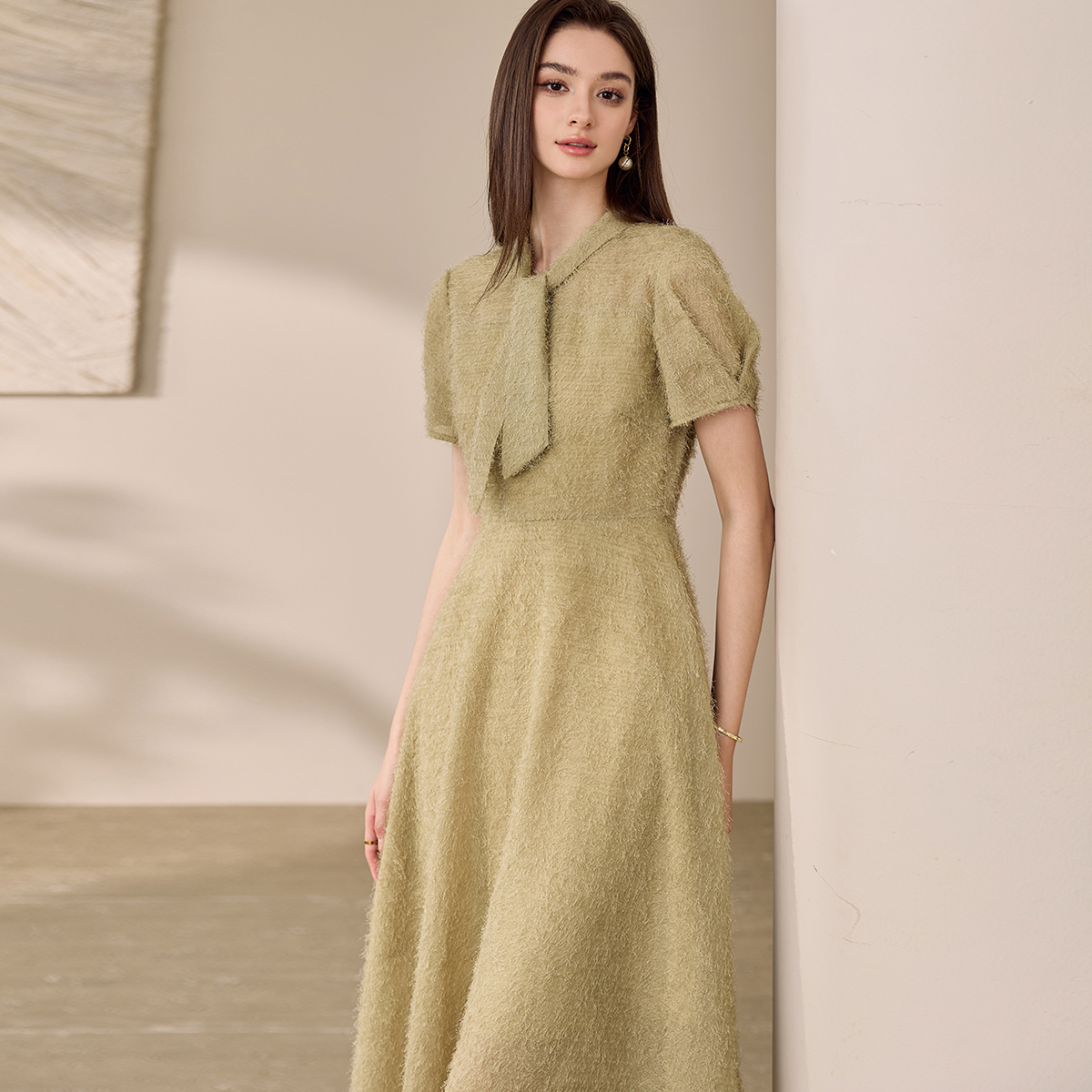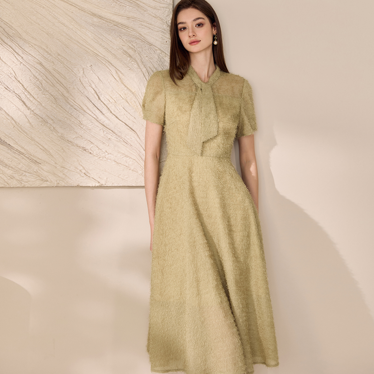 wp罗衣设计感流苏大摆连衣裙2025夏季新款气质绿色系带裙子11949