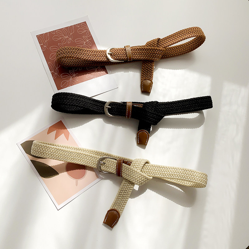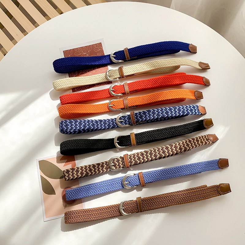 编织帆布腰带女式松紧装饰牛仔裤弹力休闲新款学生军训皮带潮男士