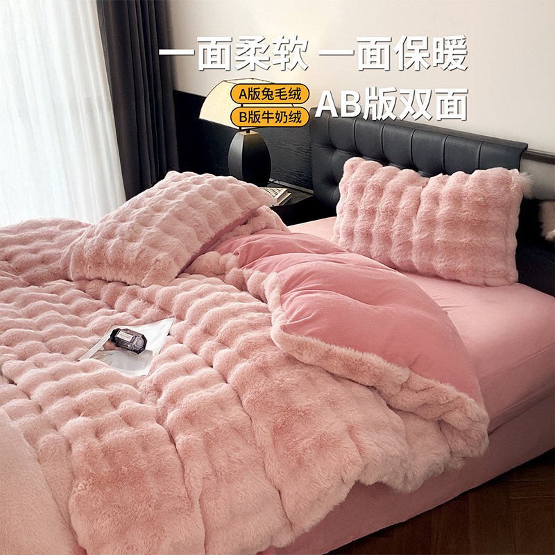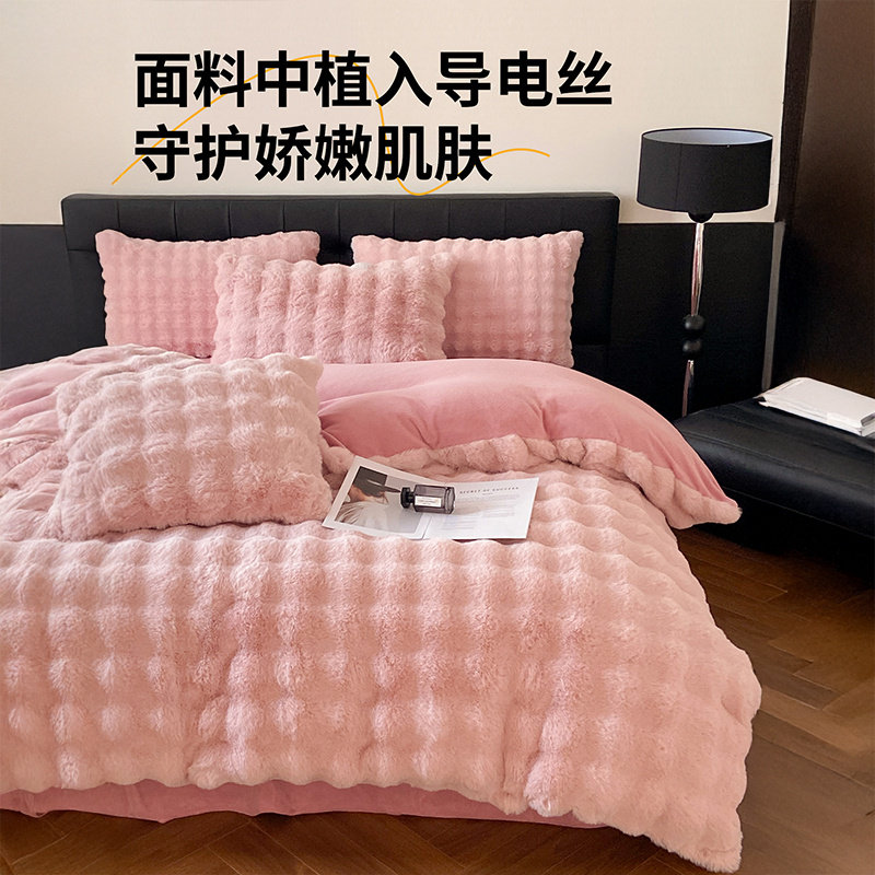 猫人轻奢仿兔毛绒保暖四件套