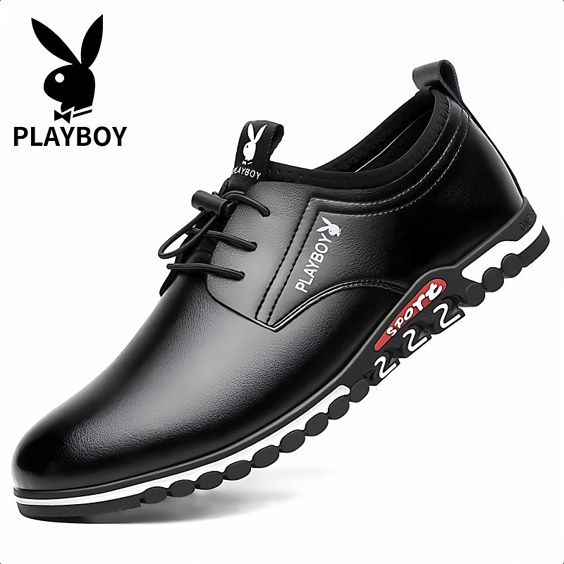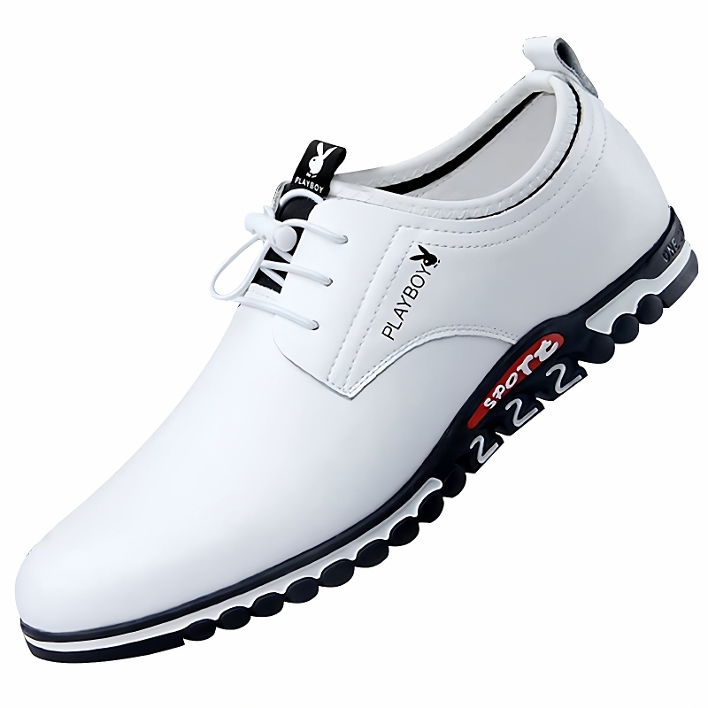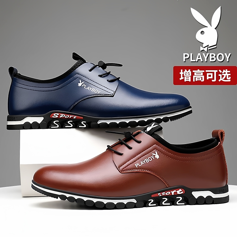 花花公子男鞋2025春季正装真皮休闲鞋男士舒适透气内增高白皮鞋男