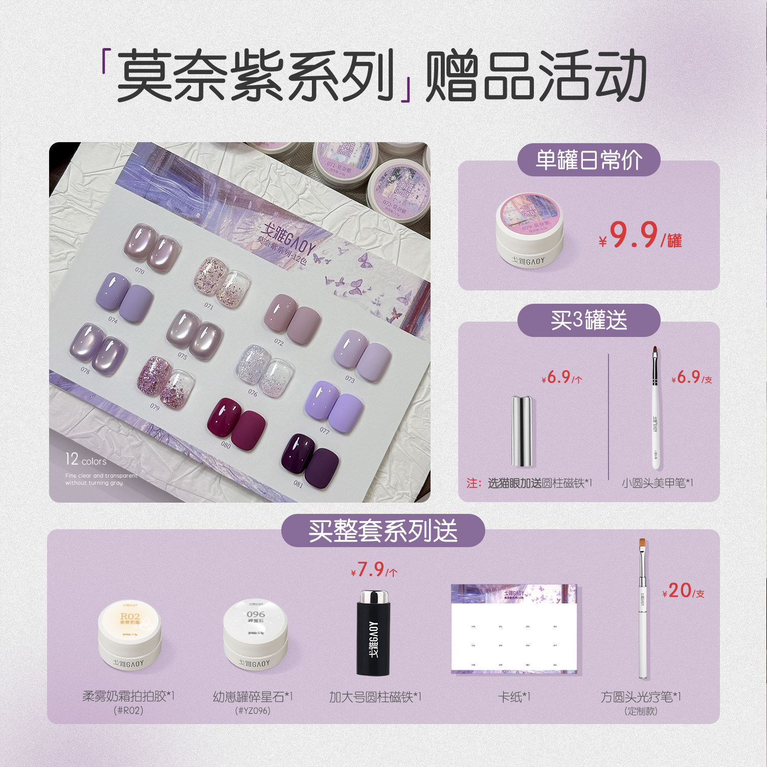 gaoy戈雅幼崽罐莫奈紫猫眼指甲油胶2025年新款网红显白玻璃珠美甲