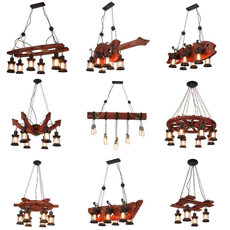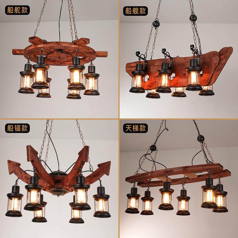 新款直销美式复古船木头吊灯工业风创意网咖酒吧台装饰美发店餐厅