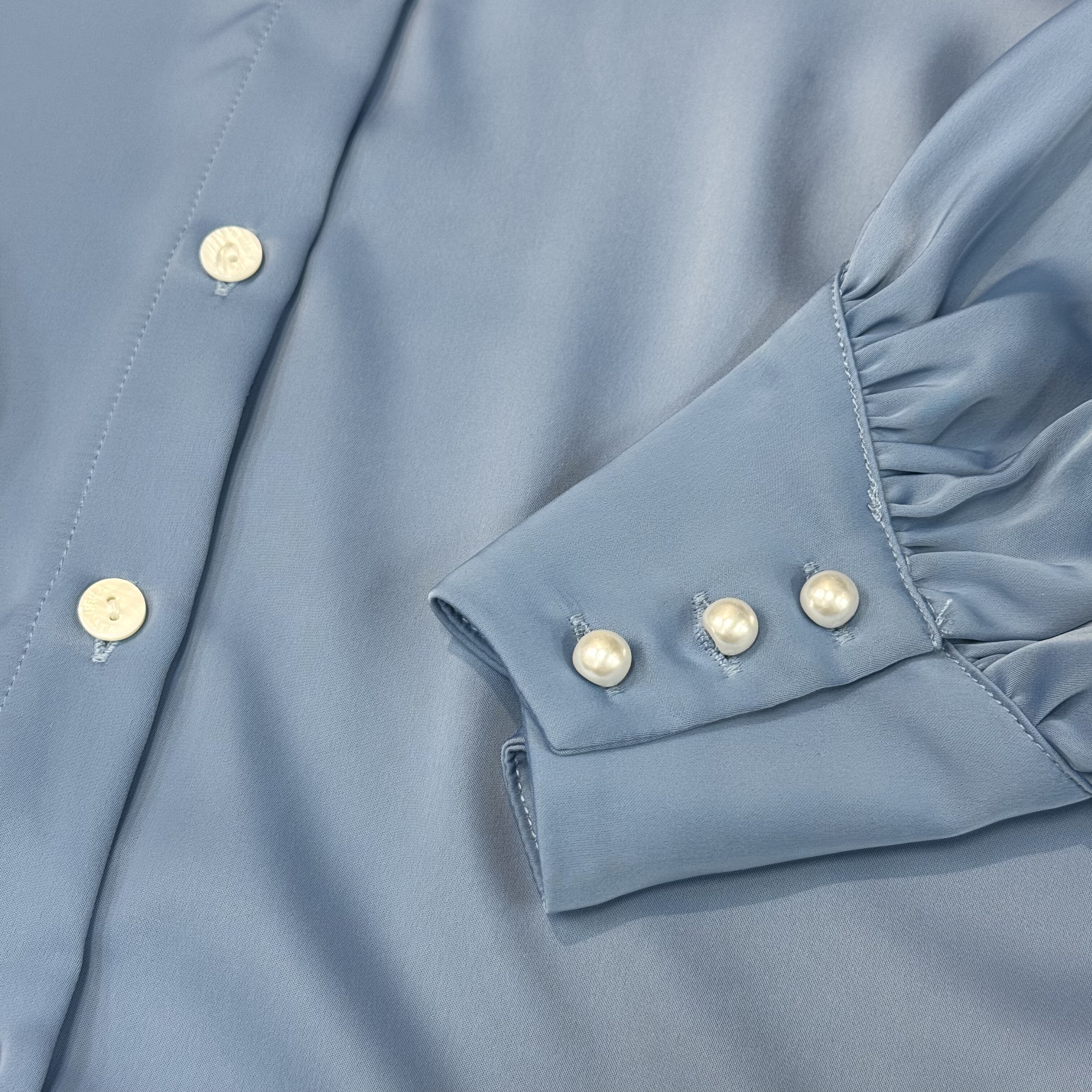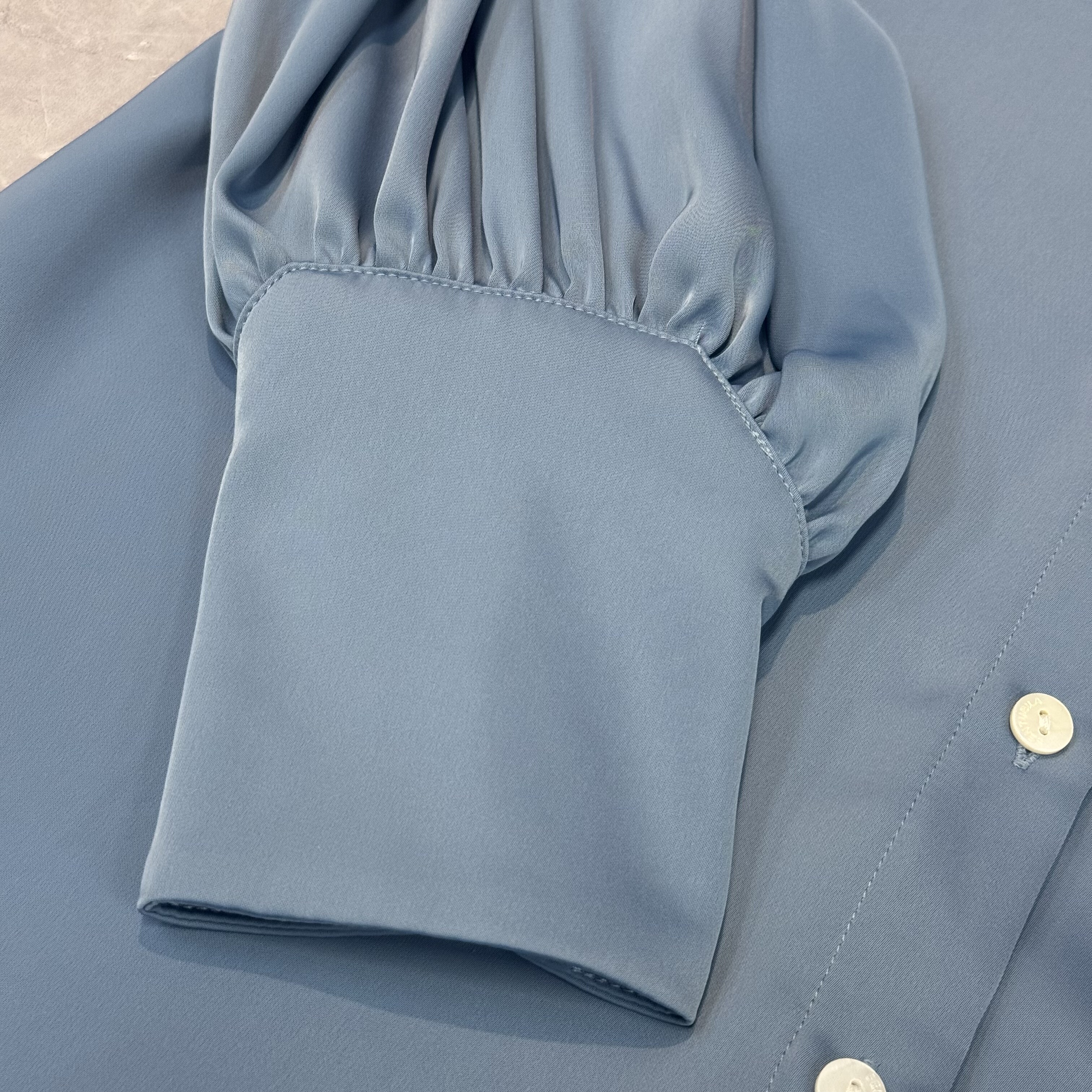 10.10尚都..高级感缎面气质通勤灯笼袖衬衫女柔光梭织长袖上衣