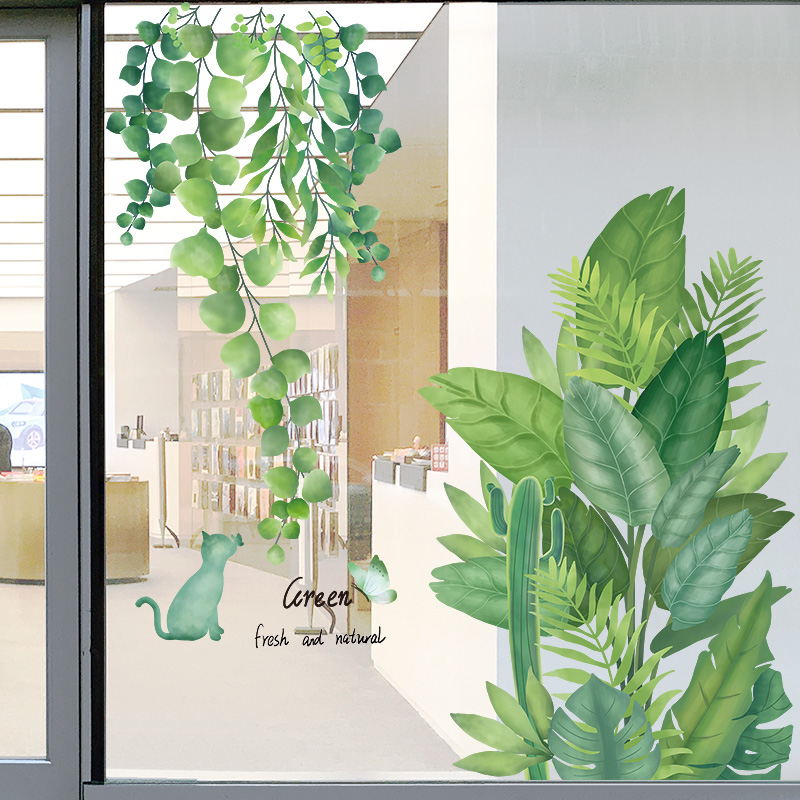 速发植物墙纸自粘沙发背景墙贴绿叶客厅装饰卧室餐厅贴画玻璃窗户