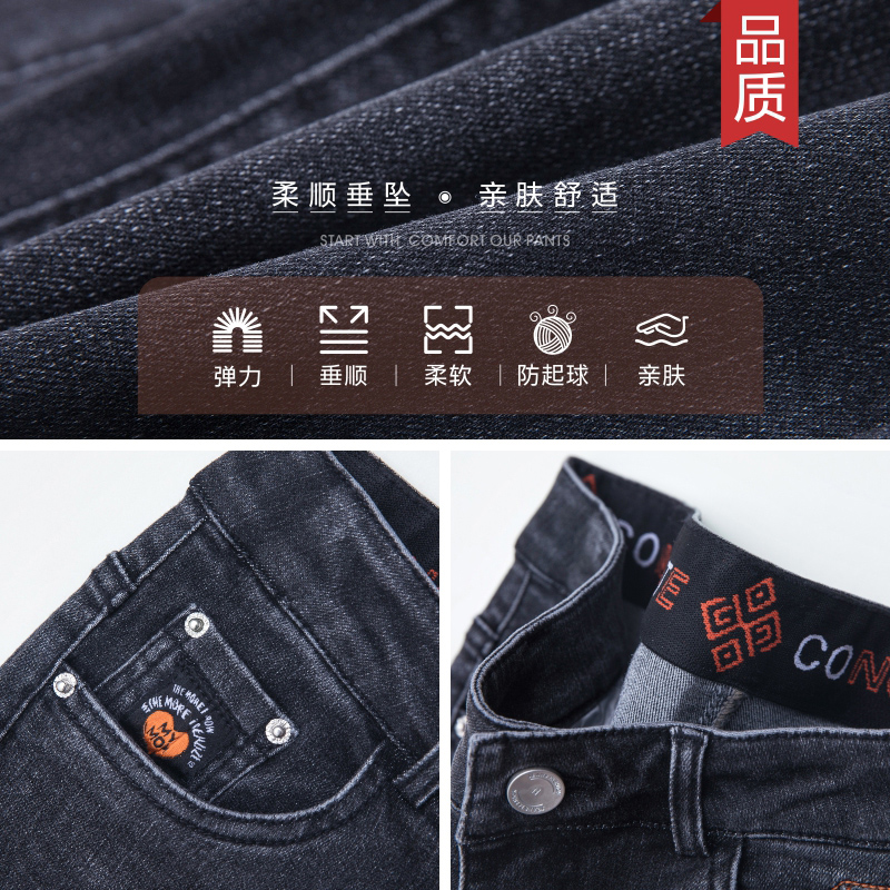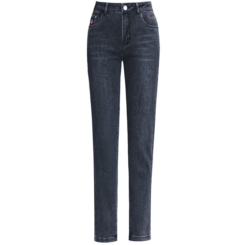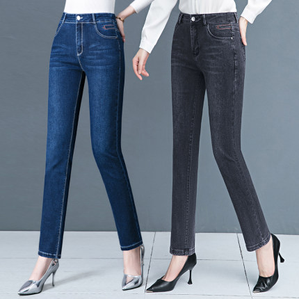 高腰直筒弹力牛仔裤长裤