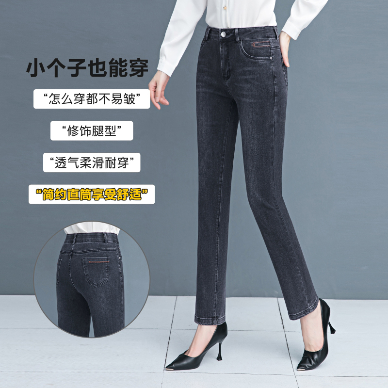 直筒牛仔裤女春秋2024新款烟灰色高腰弹力女裤宽松秋冬中年妈妈裤