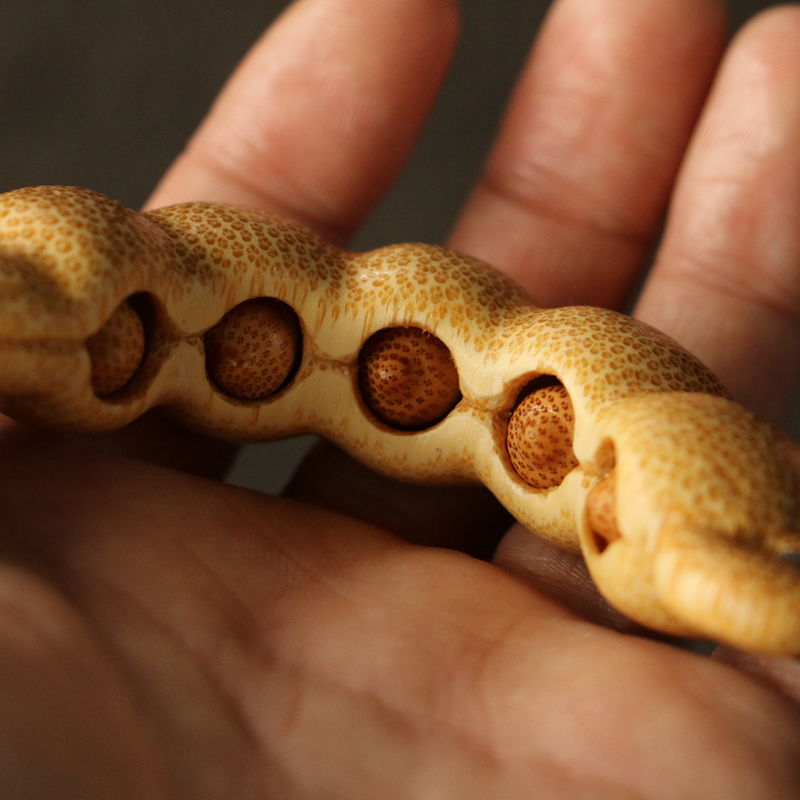 精品纯手工雕刻天然龙血金丝老玉竹活籽四季发财豆小挂件把玩