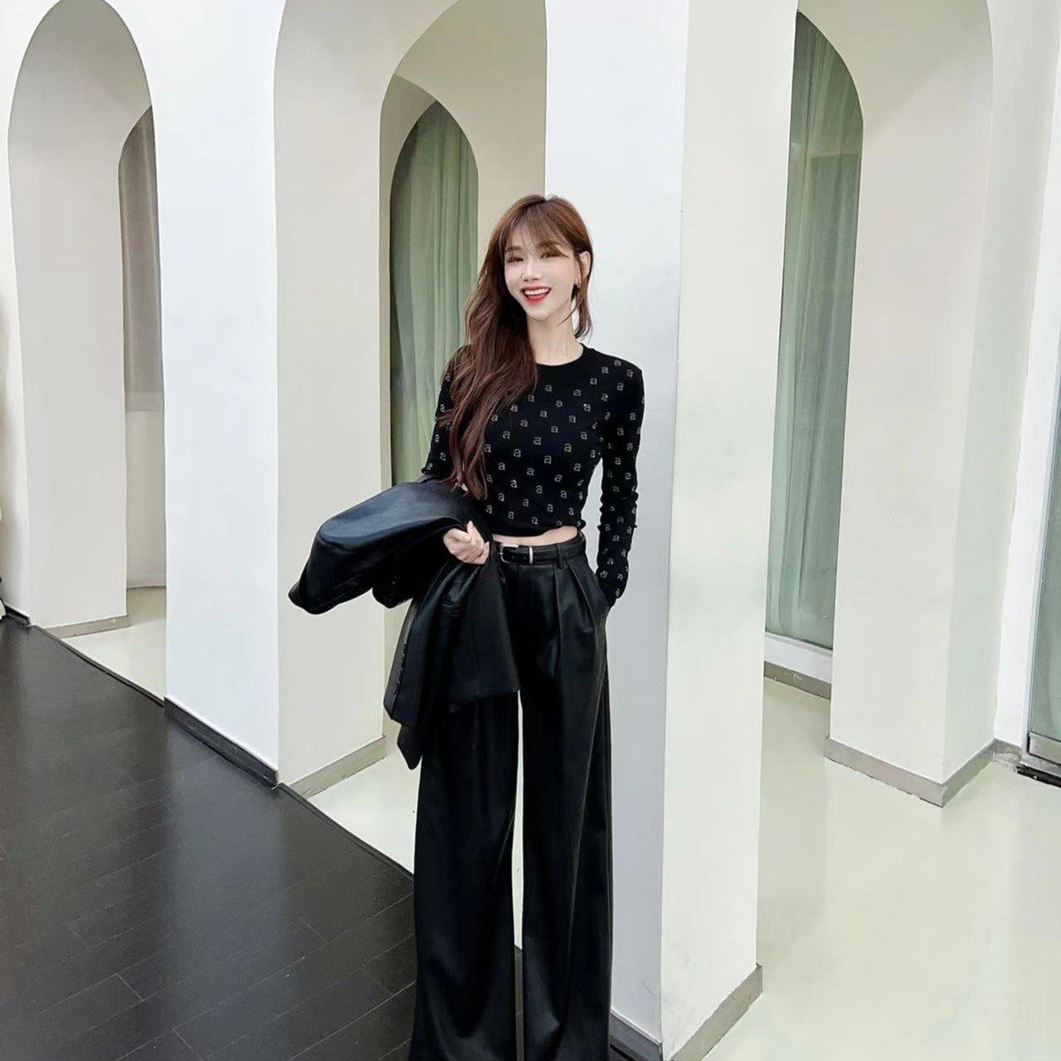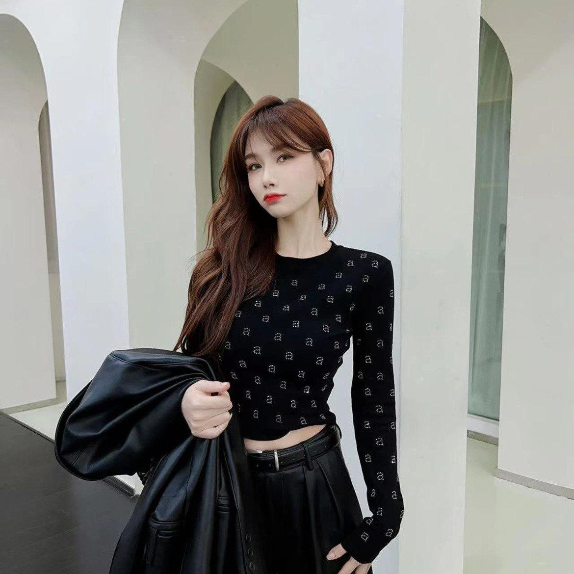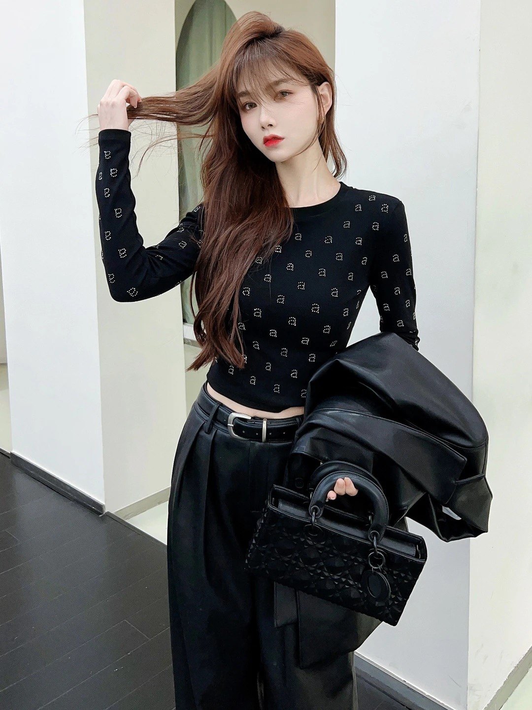 卡卡女装官方旗舰正品 《曼城日记》修身烫钻字母小黑T恤上衣打底