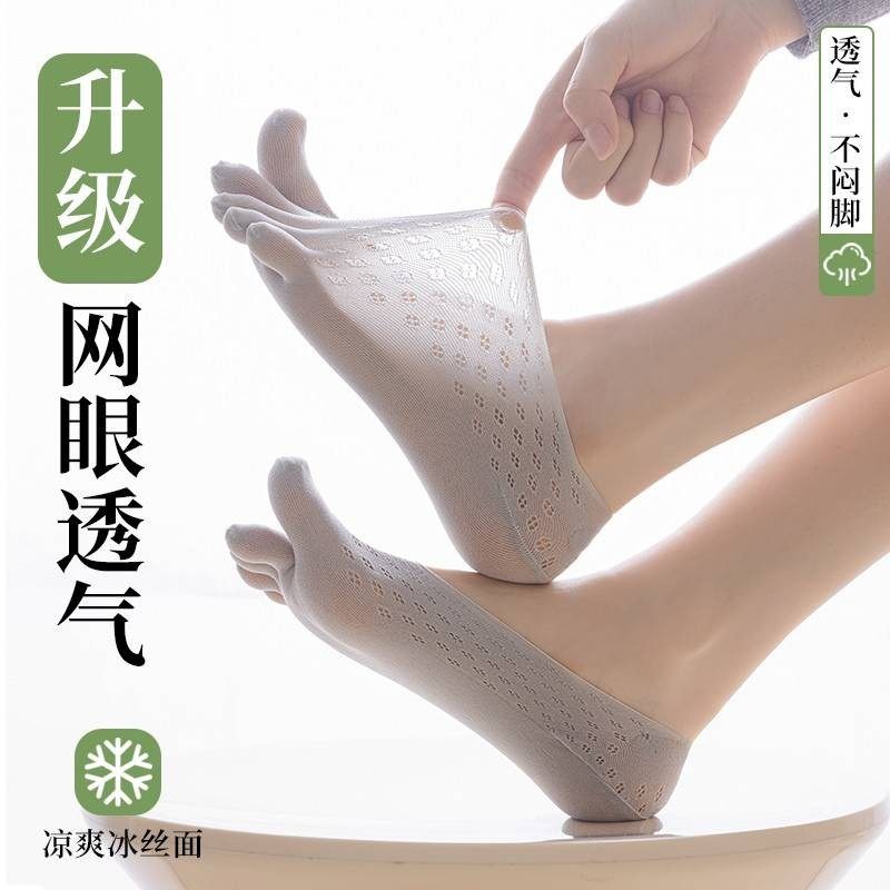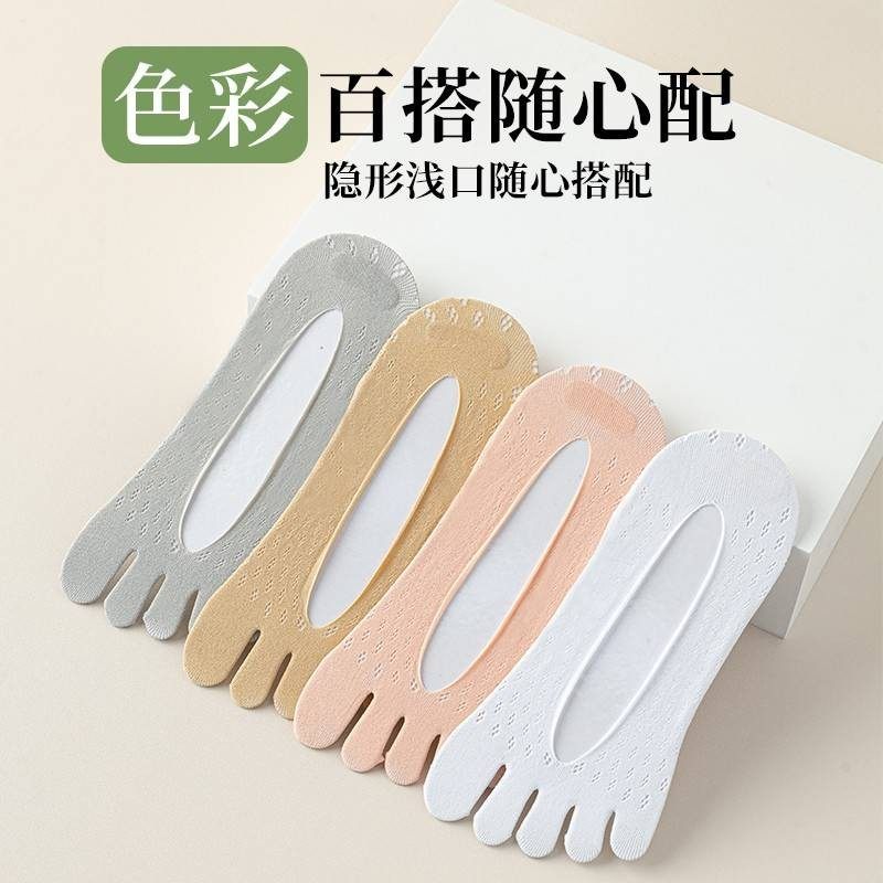 五指袜女春秋薄款网袜透气隐形硅胶防滑不掉跟夏季纯棉分趾袜船袜
