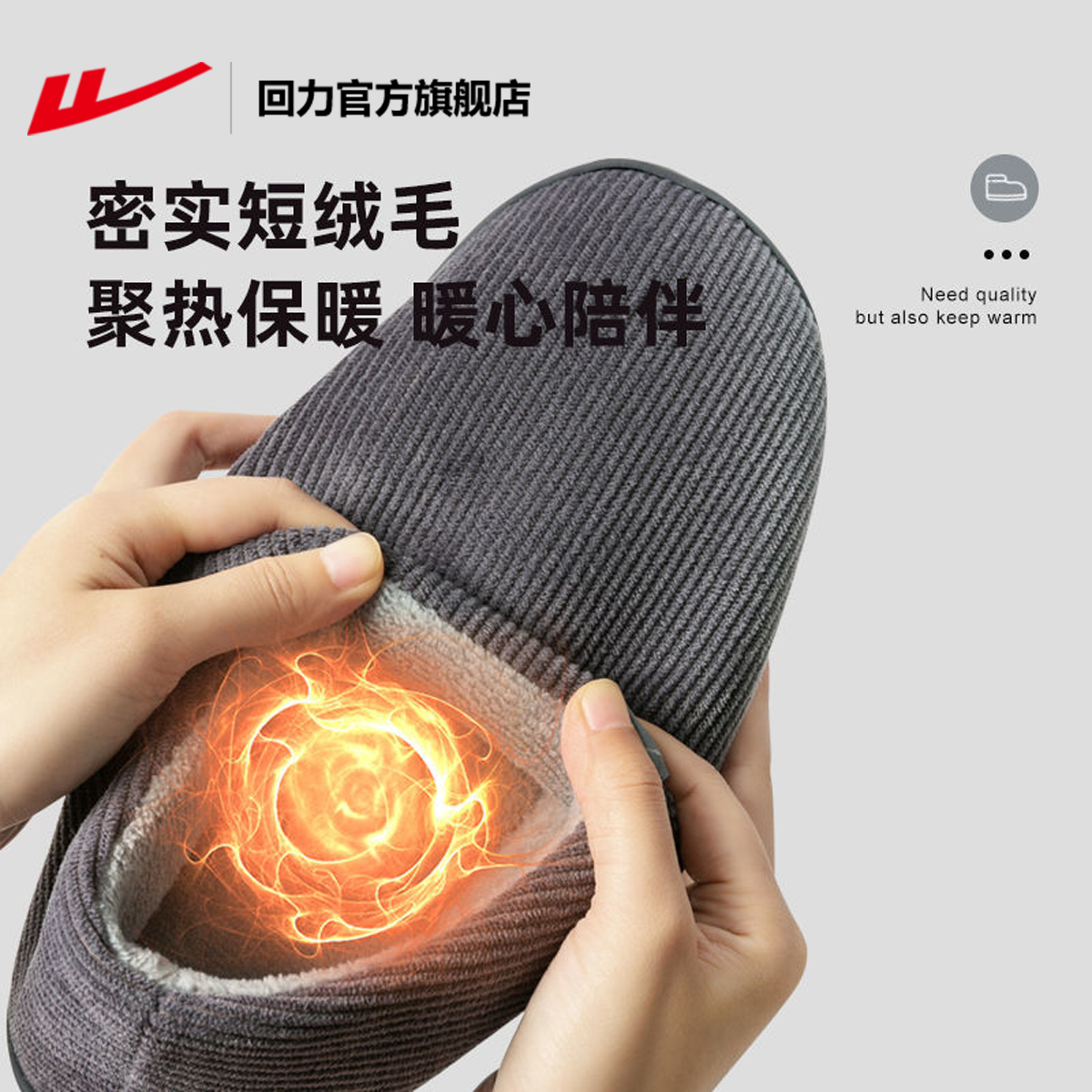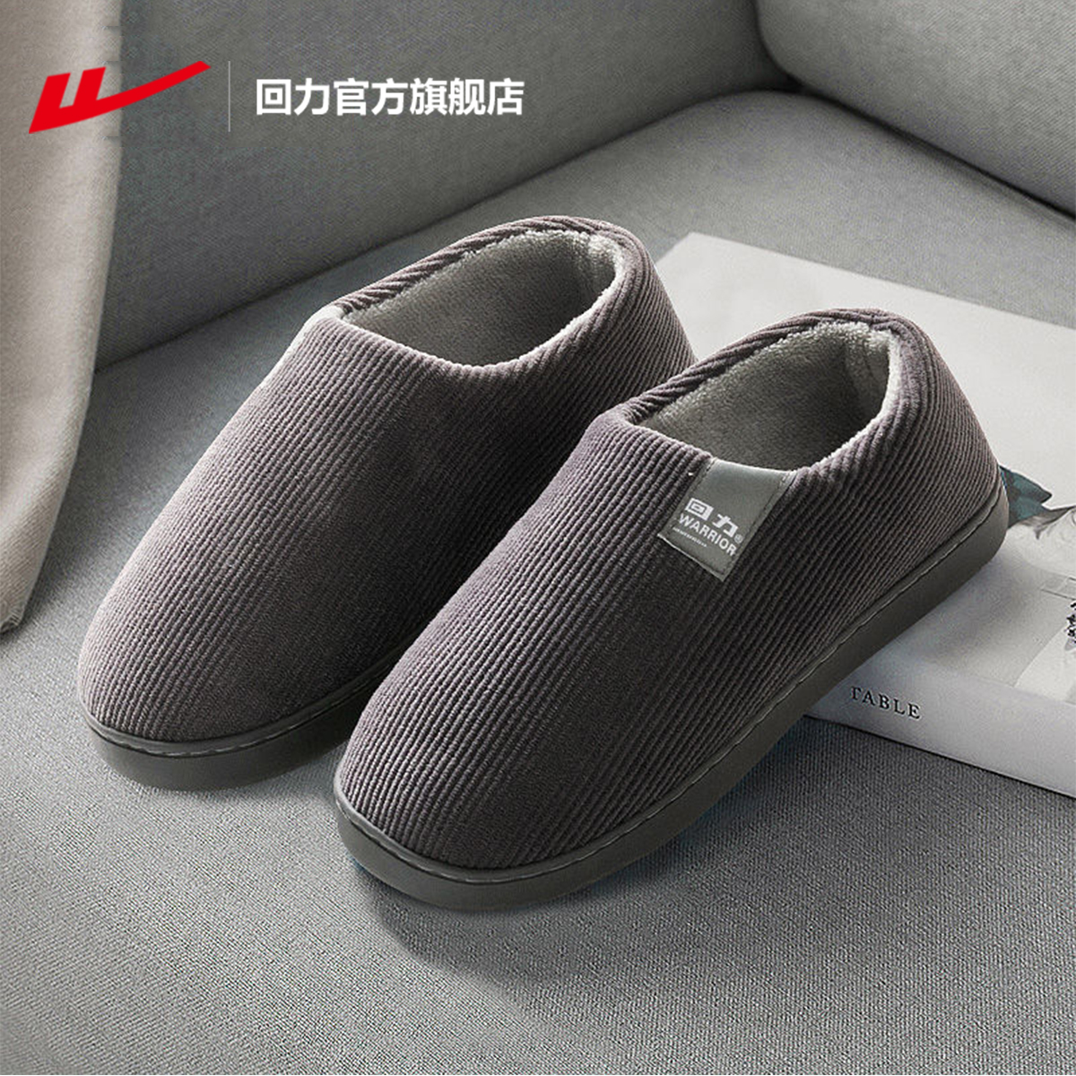 回力官方旗舰店棉拖鞋男冬季室内家居厚底防滑加绒保暖爸爸棉鞋女