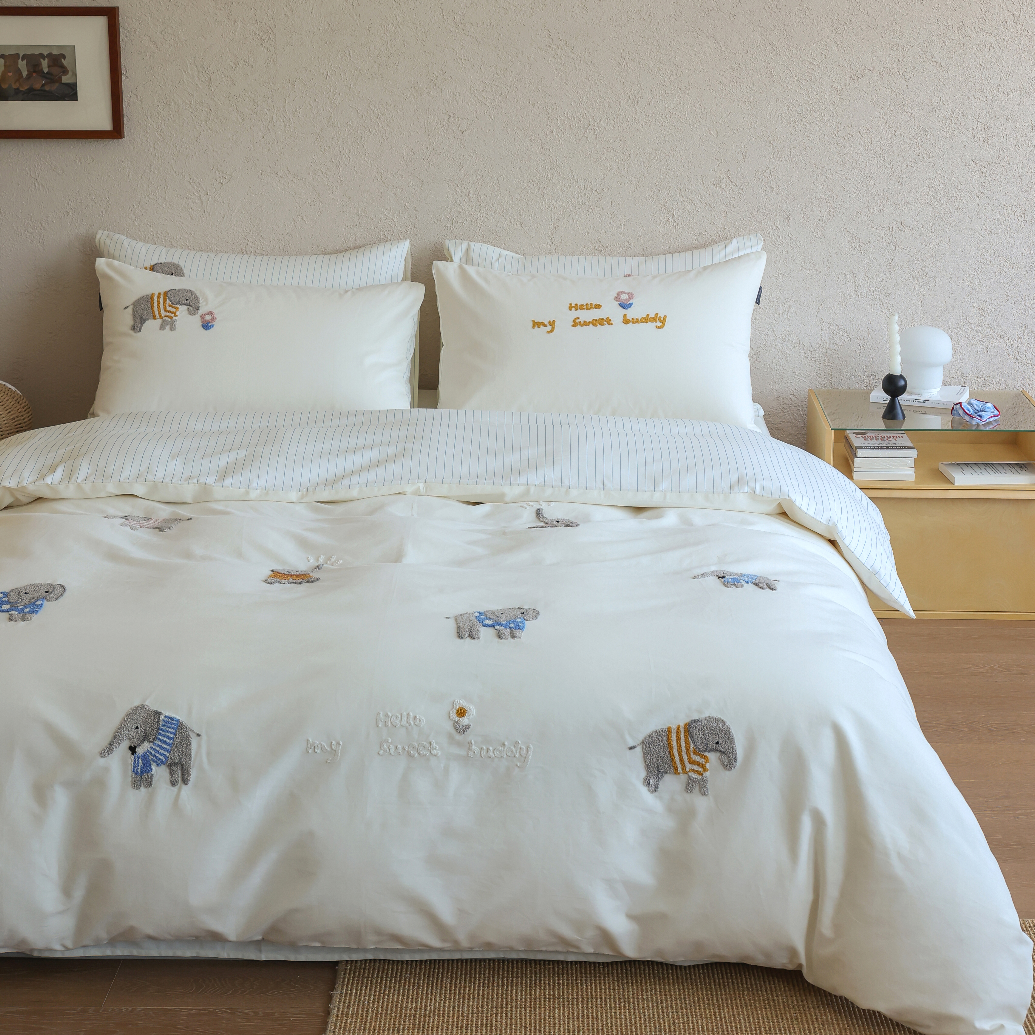 ins小象全棉长绒棉磨毛儿童床品三件套纯棉被套男女孩床单四件套