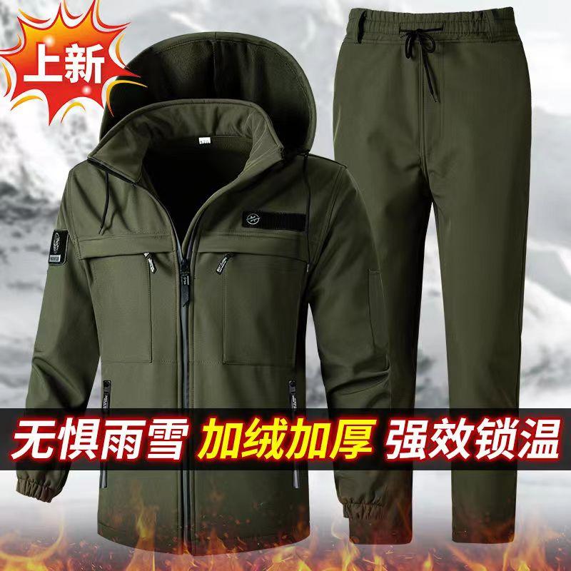 冬季加绒工作服套装男女防风防水冲锋衣保暖加厚户外骑行登山工装