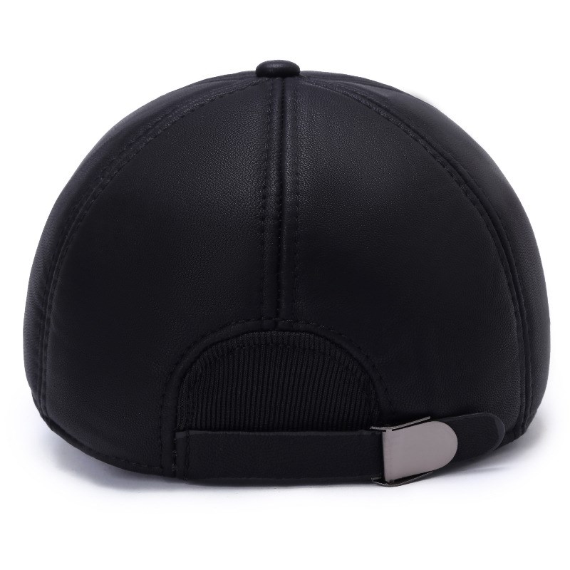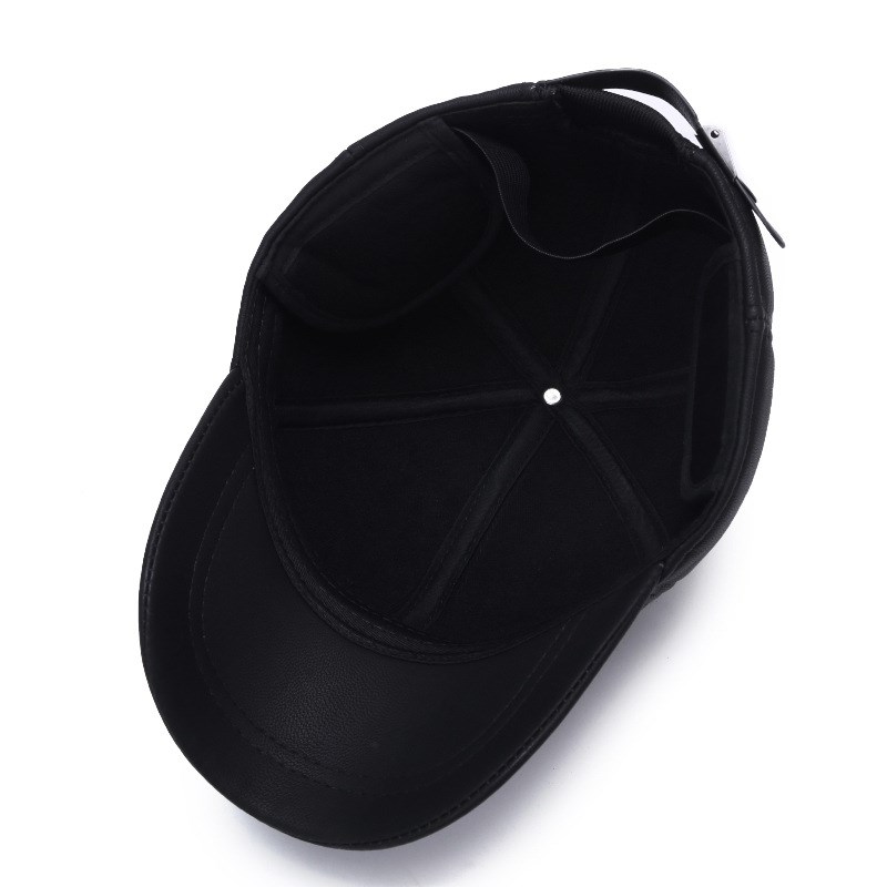新款仿皮棉帽男士休闲款棒球皮帽中老年J冬季保暖护耳加绒鸭舌帽