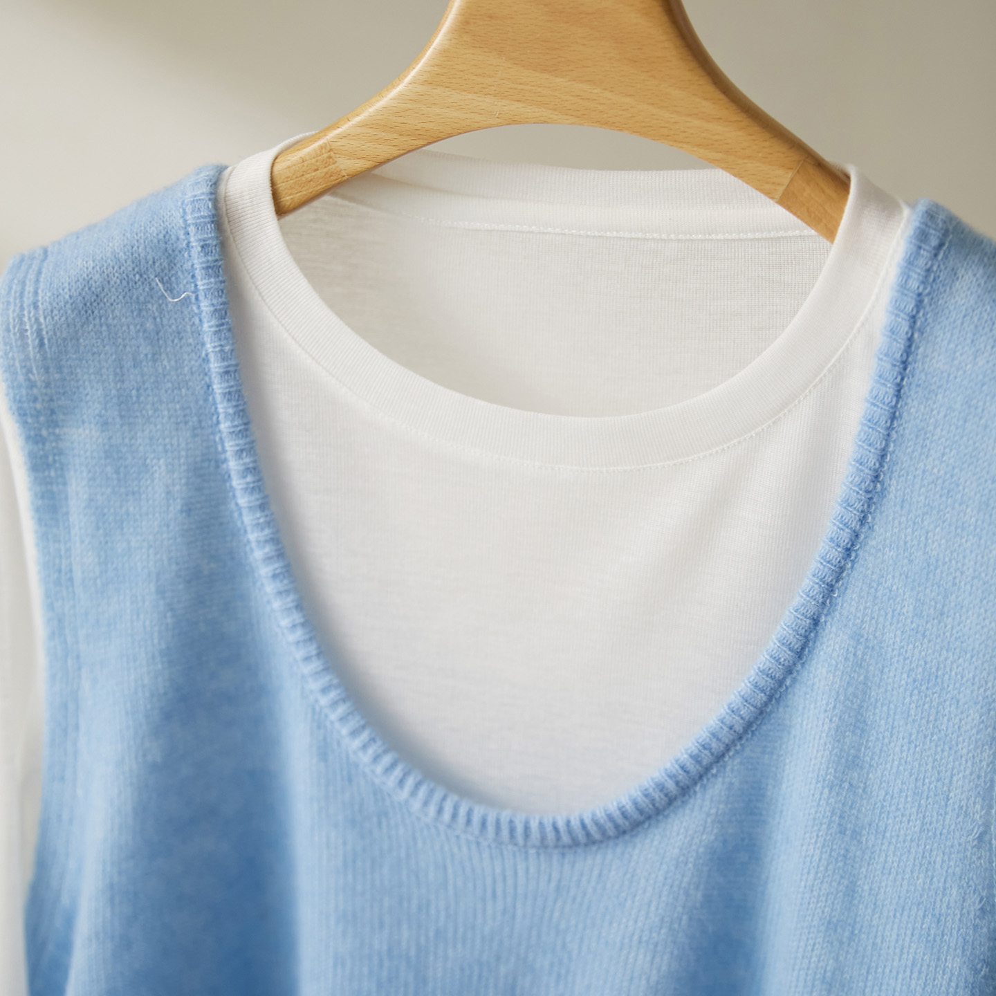初影 时尚套装女2025秋冬装新款圆领无袖毛衣针织衫打底衫两件套