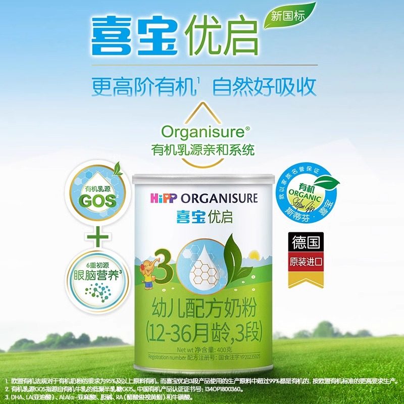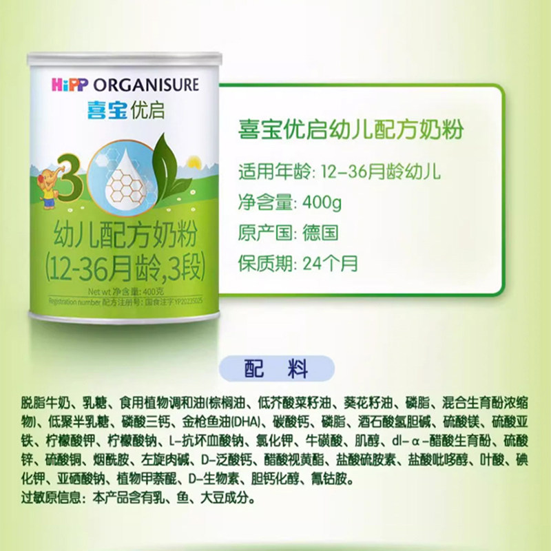 德国Hipp/喜宝优启有机幼儿配方牛奶粉3段(12-36月)400gx1罐