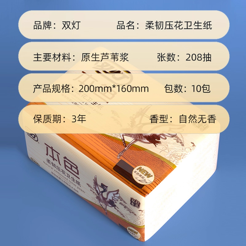 双灯卫生纸本色柔韧压花