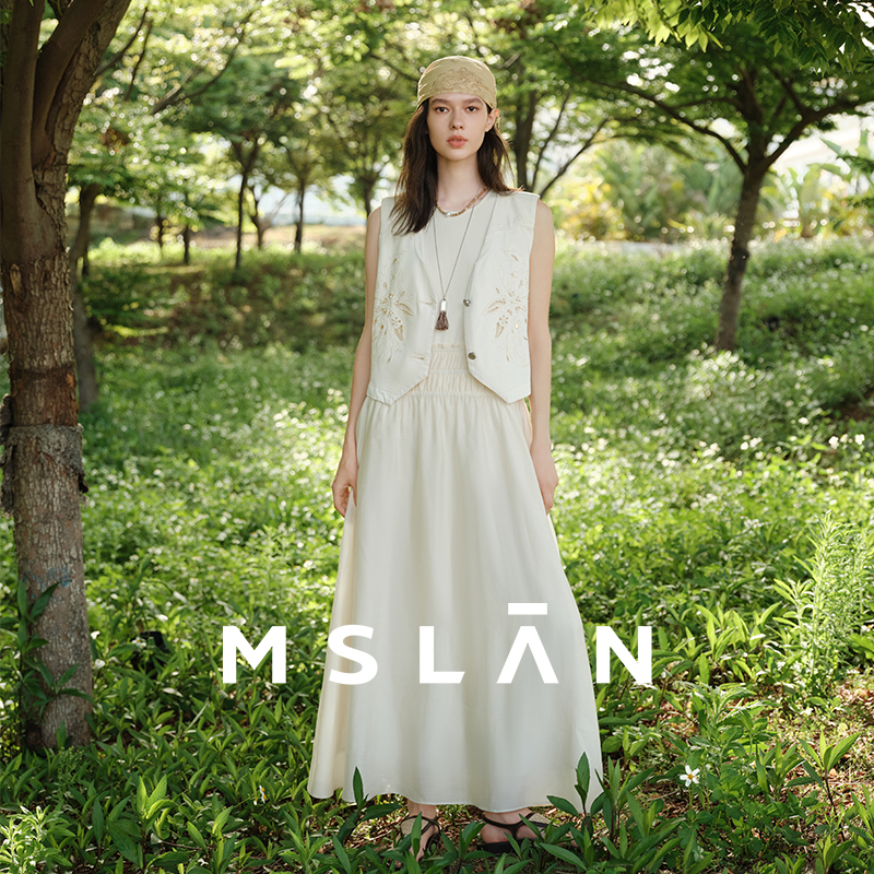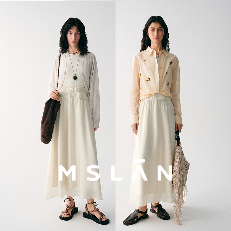 MSLAN白月光/25秋 JI简风假两件背心裙轻盈纸片人连衣裙