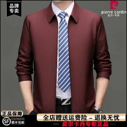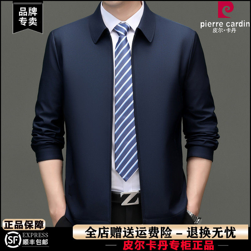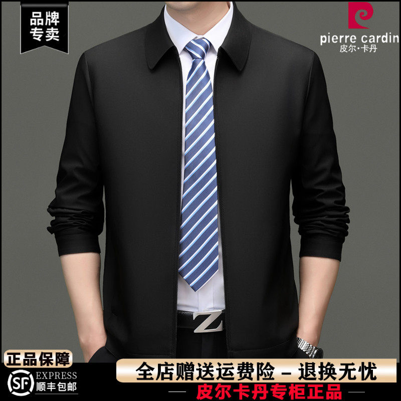 皮尔卡丹正品夹克男春秋季2025新款中年商务休闲行政茄克外套男