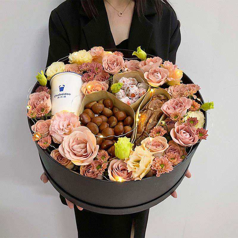 入冬四件套礼盒板栗花束奶茶红薯鲜花速递同城杭州上海广州配送店