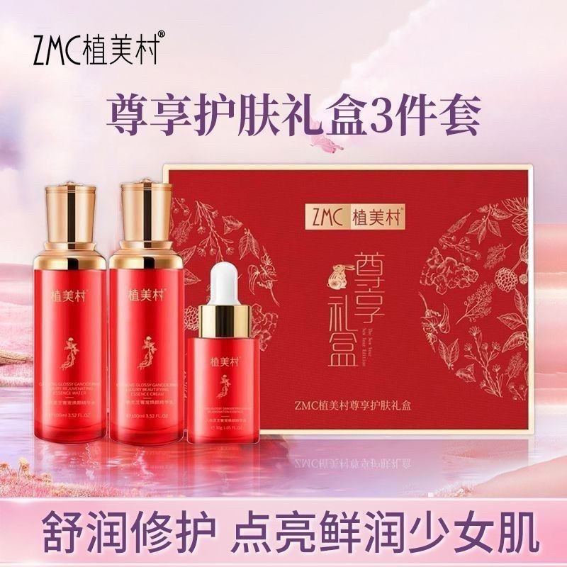 植美村补水保湿套装人参灵芝紧致滋养护肤化妆品礼盒精华液水乳