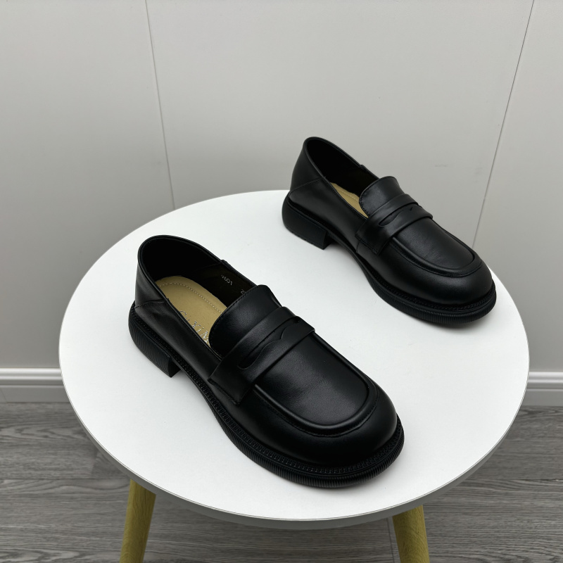 断码处理2025春款真皮女鞋通勤百搭圆头一脚蹬乐福鞋软底牛皮单鞋