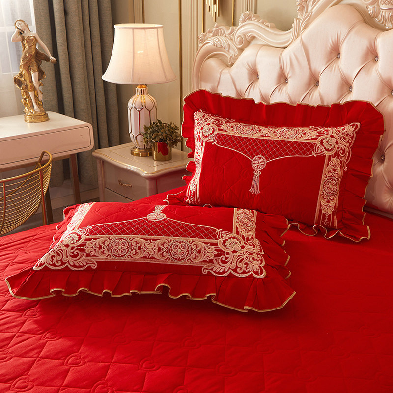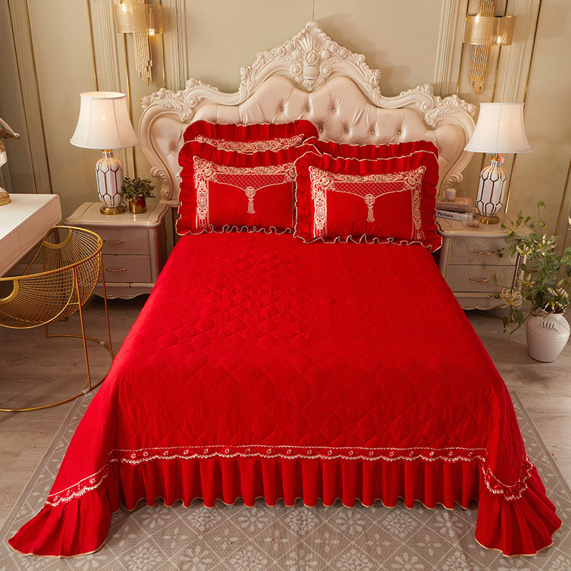 加厚全棉纯棉四件套床盖韩式公主风床罩床单被套婚庆大红床上用品