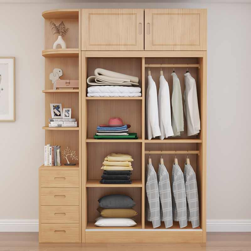 订制实木衣柜简约现代卧室出租房用原木推拉门储物柜收纳大衣橱