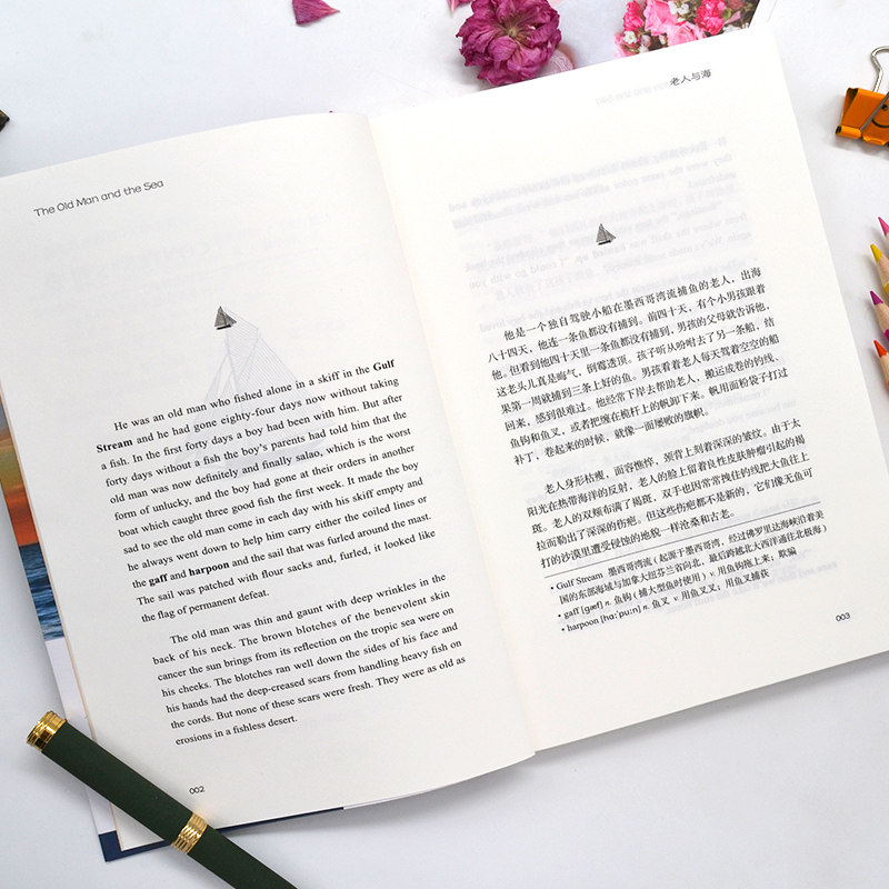 正版 老人与海英汉对照注释版原版中英文对照双语读物海明威小学初高中英文版原版课外阅读世界经典文学名著小说英语阅读畅销书籍