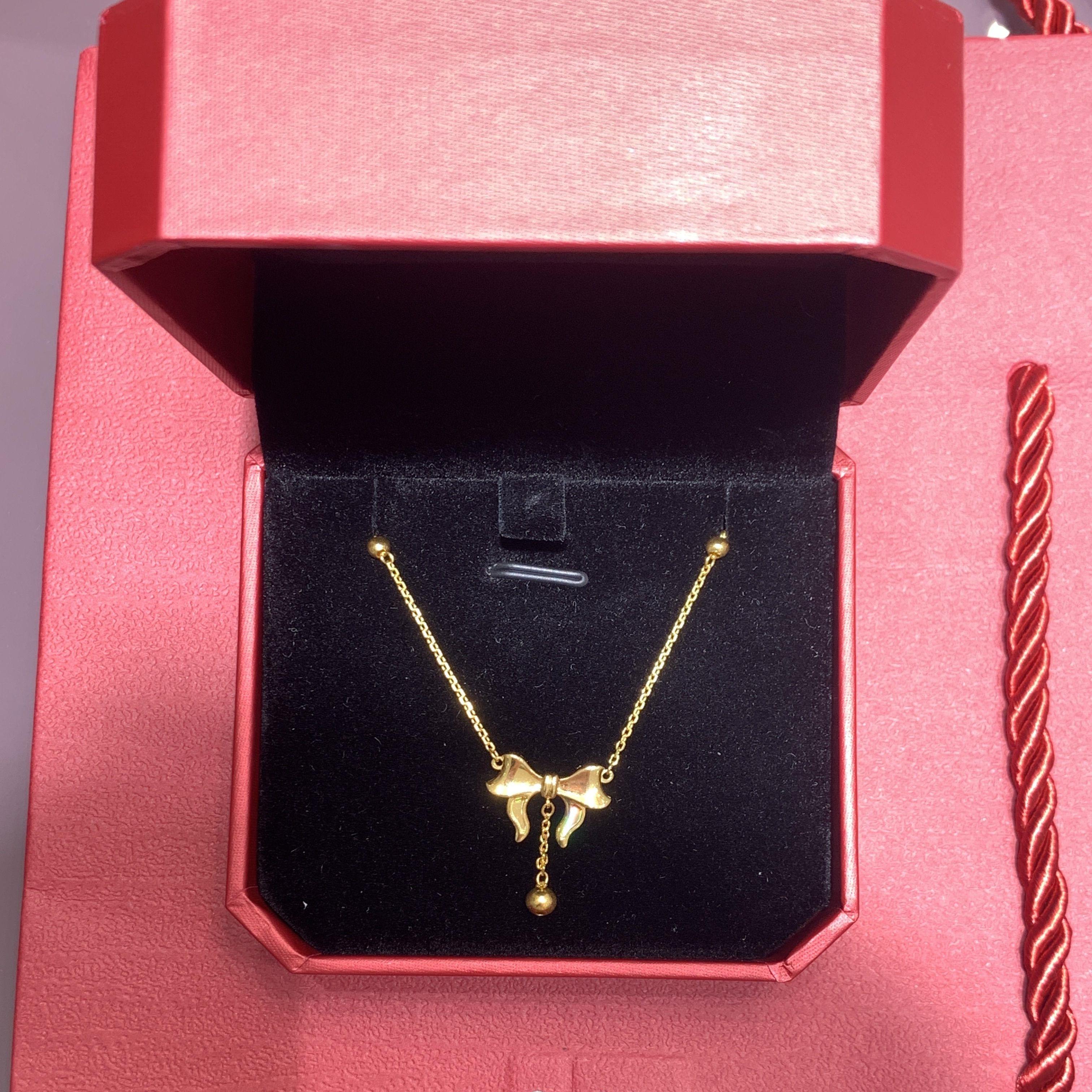 周大福代购 七彩在逃蝴蝶结公主黄金足金项链 克减80 计价F231888